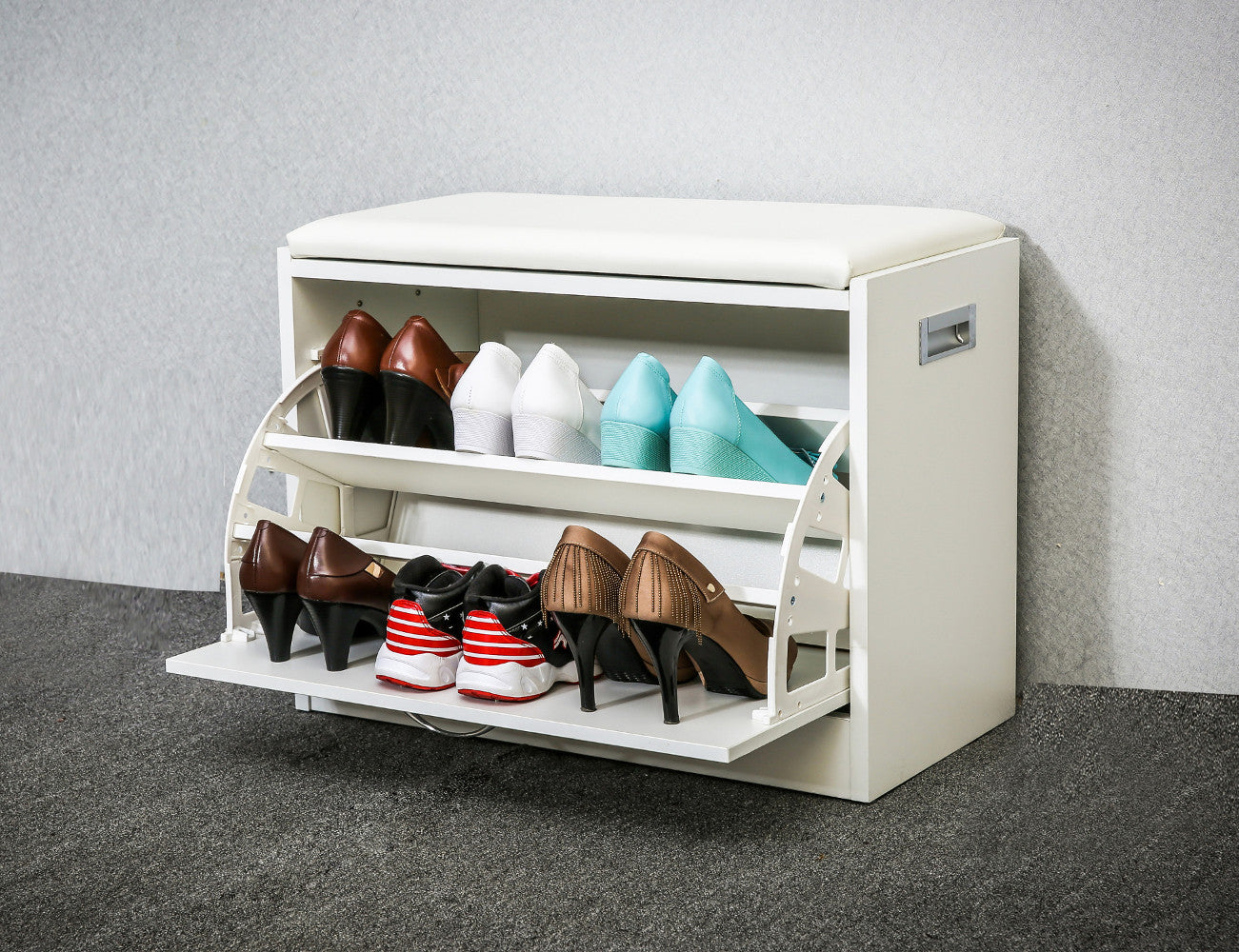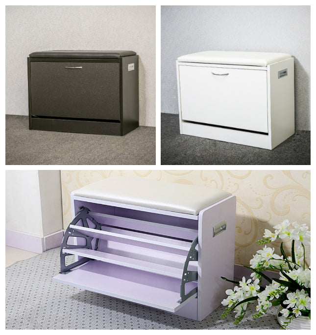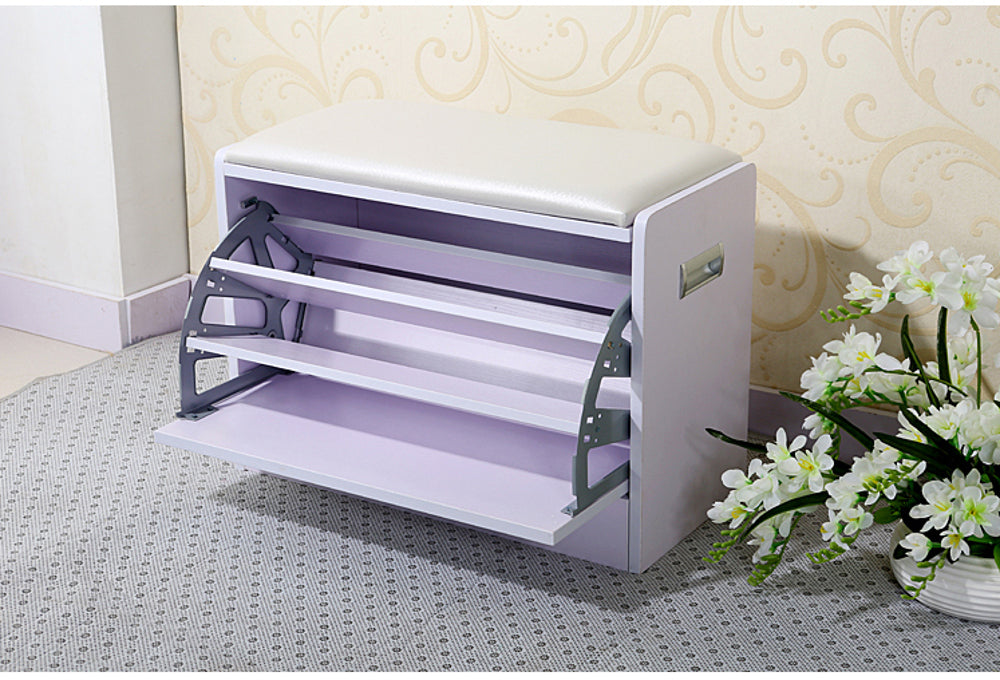 שידת התארגנות הכוללת מושב לישיבה ונעילת נעליים, ותא לאחסון הנעליים בצורה נוחה לשימוש ולשמירה עליהן.