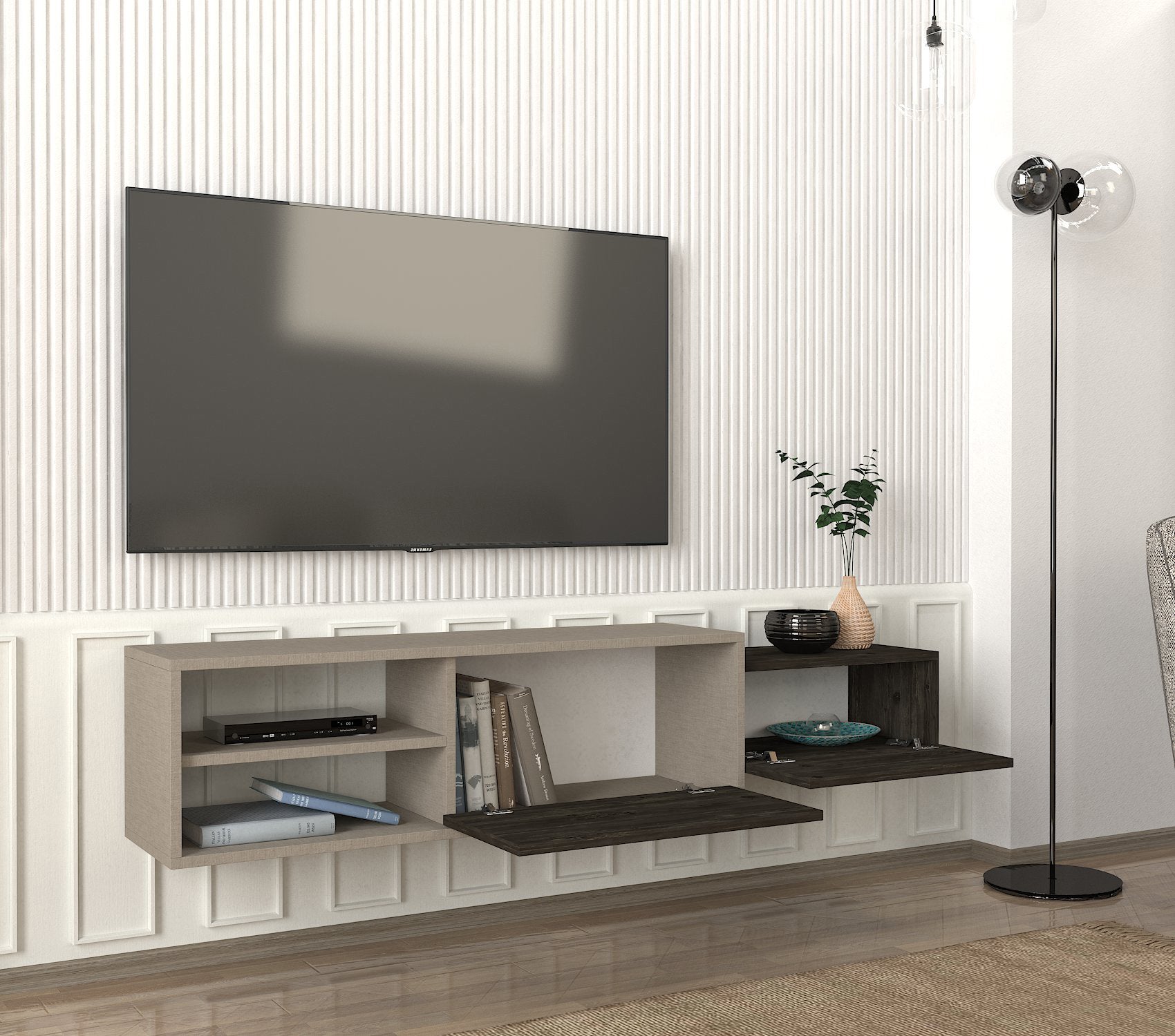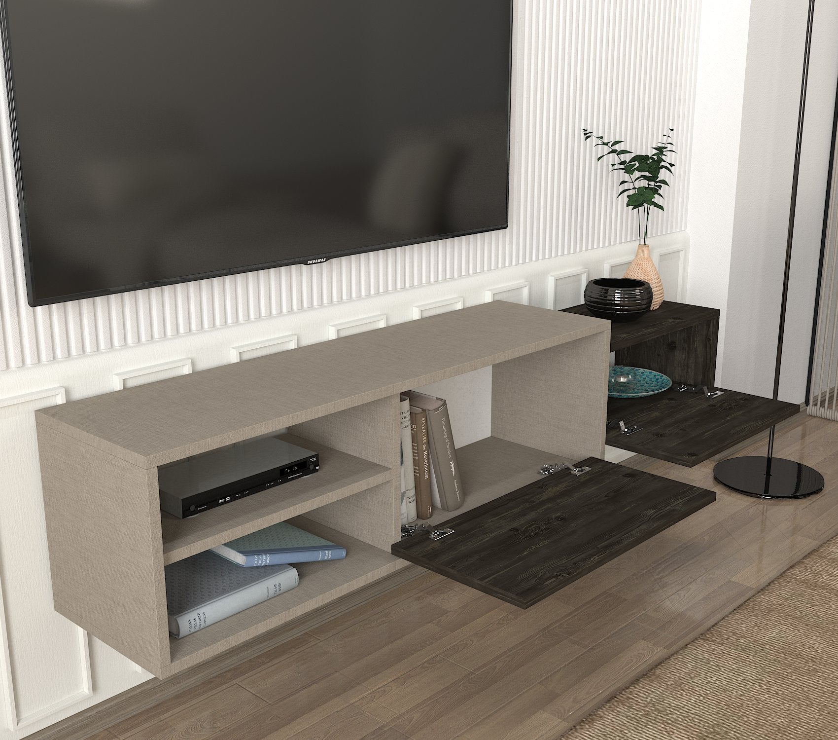 דיון DE2521 קרם אבן משולב חום אגוז כהה - מזנון טלוויזיה מעוצב צף