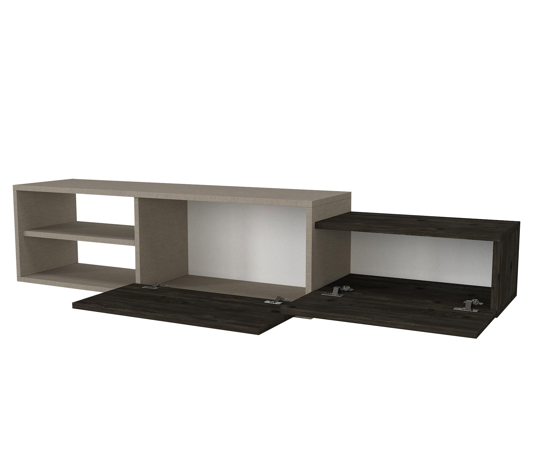 שני מדפים להנחת ממיר או פריטים יומיומיים נוספים ו-2 יחידות אחסון עם קלאפה.