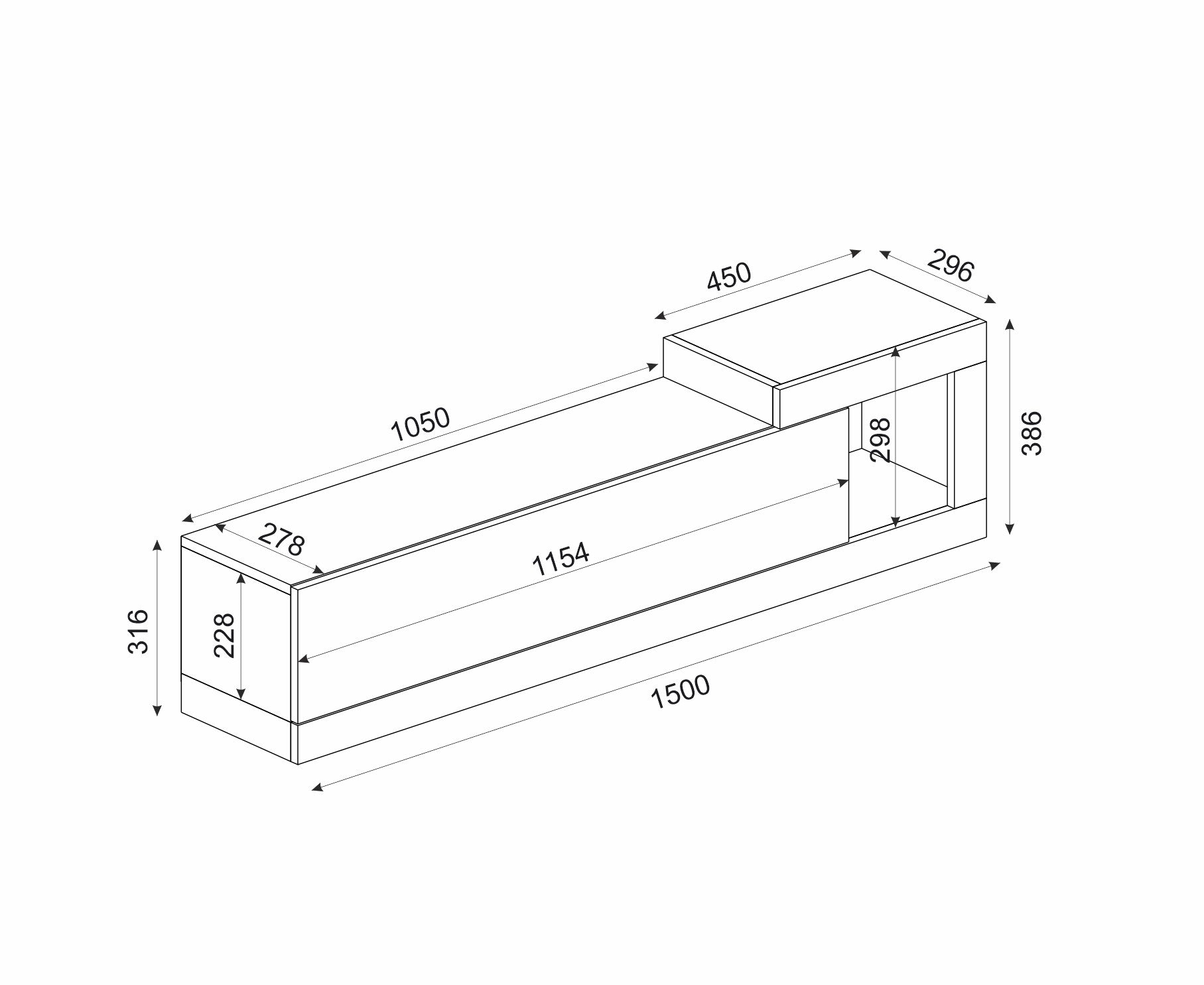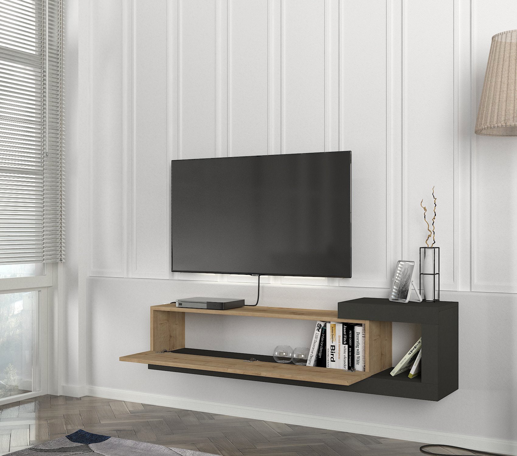 וולייר DE2613 - אפור פחם משולב עץ אלון-  מזנון טלוויזיה צף