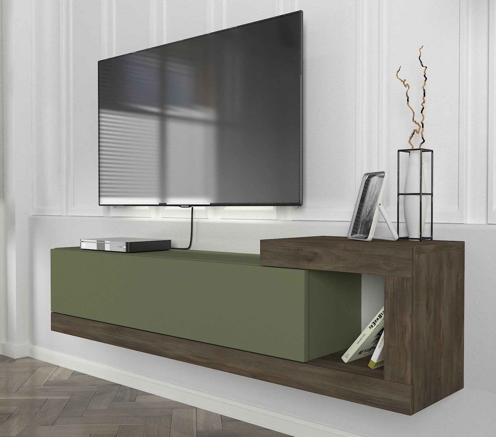וולייר DE2613 - ירוק זית בשילוב אגוז כהה- מזנון טלוויזיה צף
