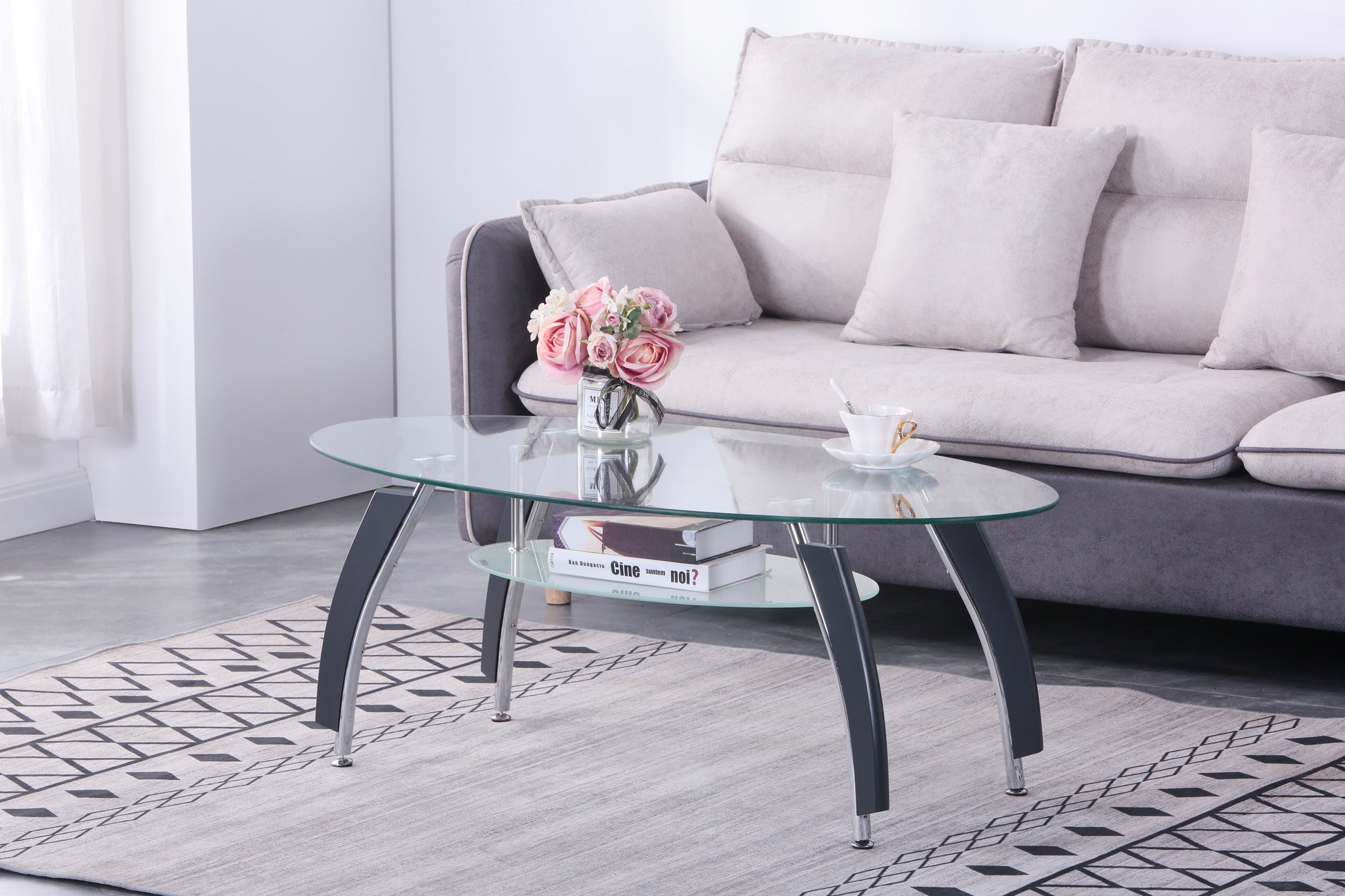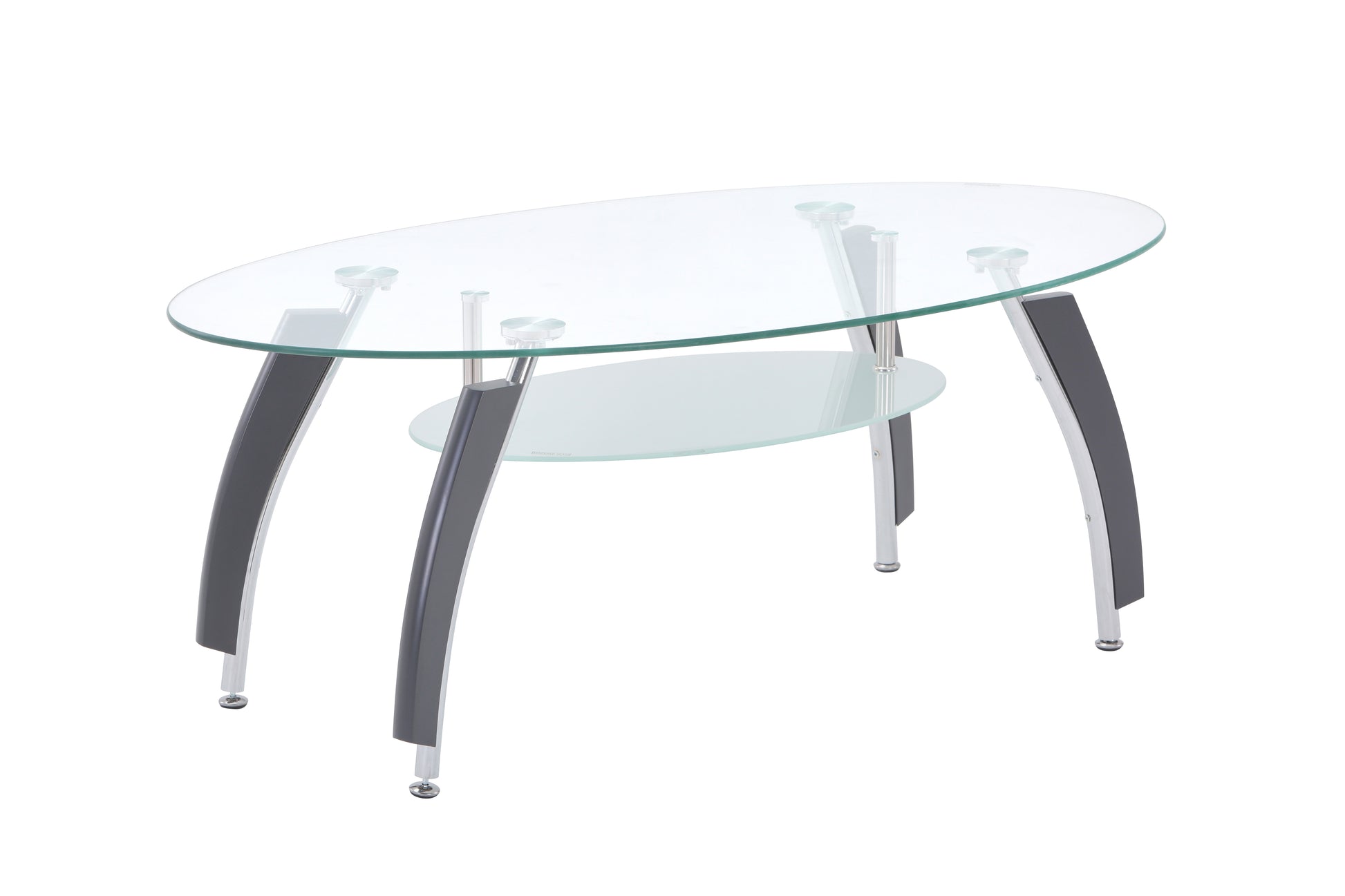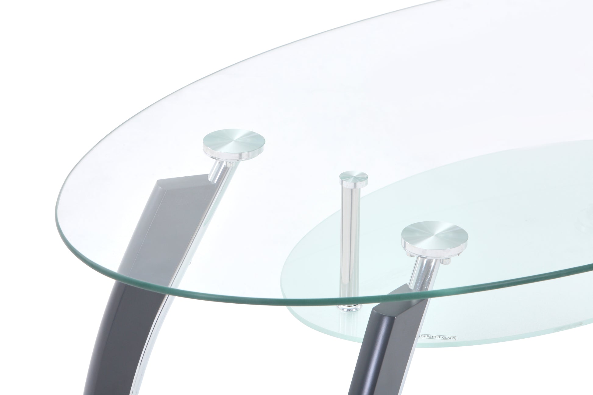פלטת השולחן העליונה עשויה זכוכית מחוסמת שקופה.