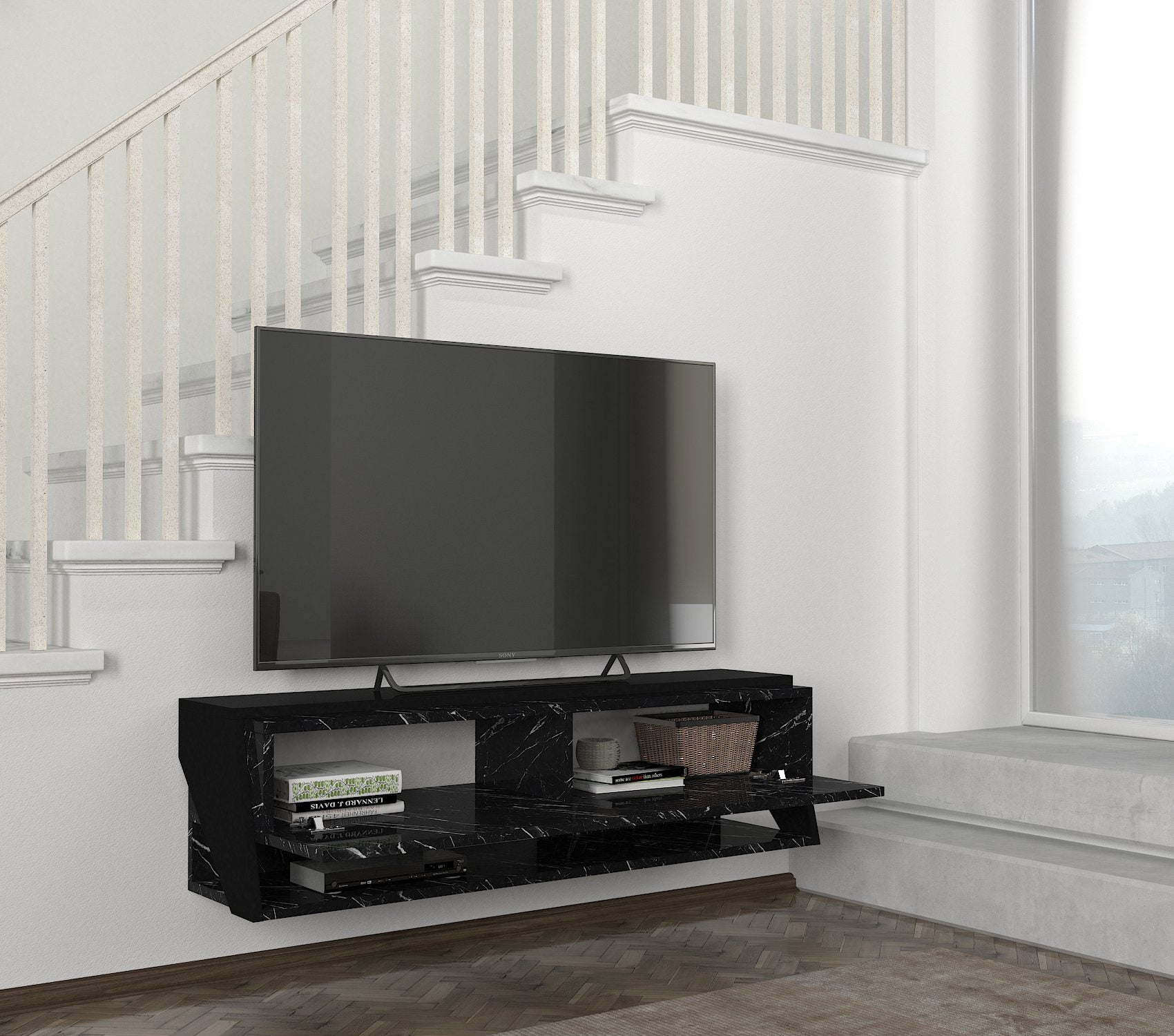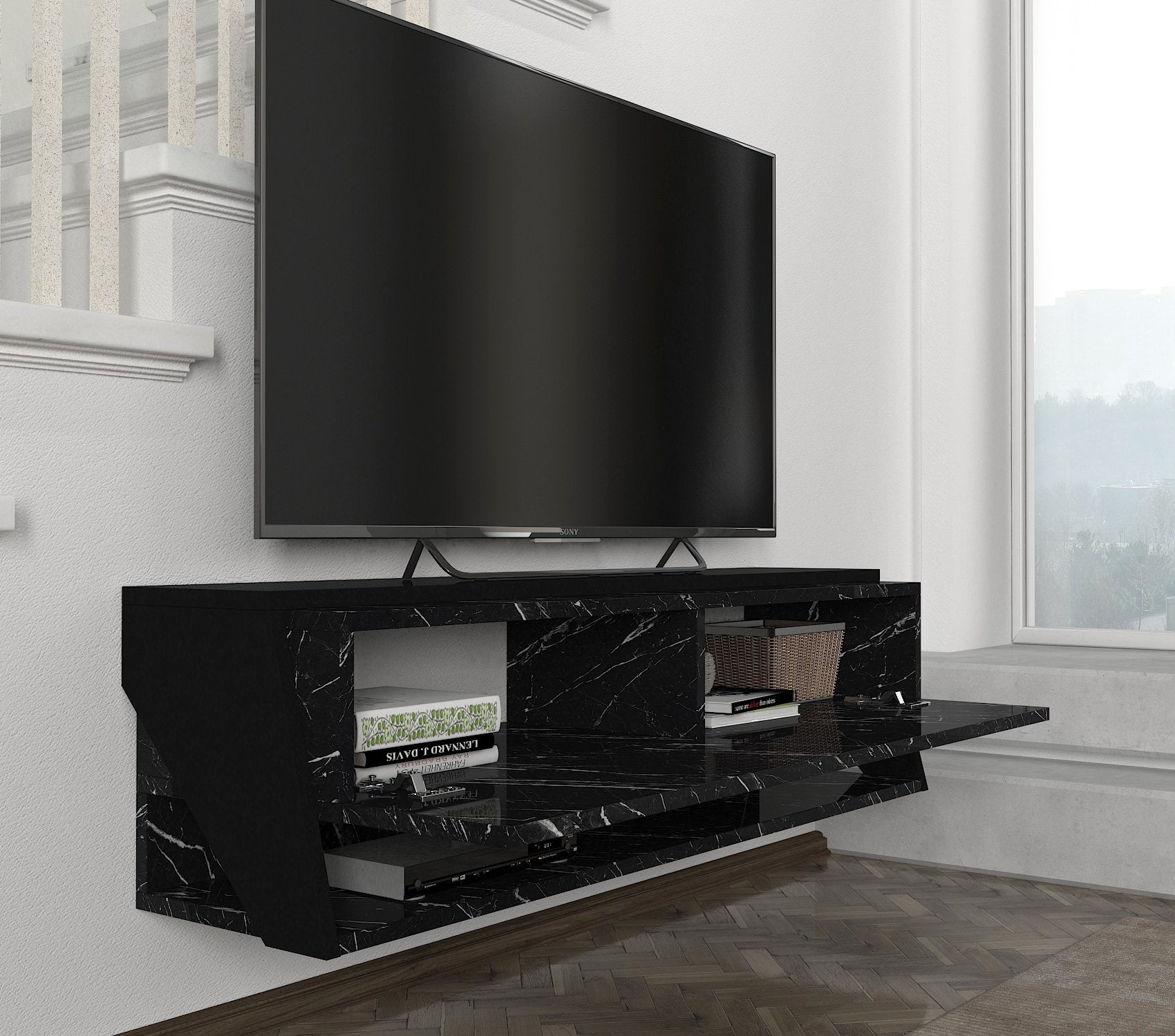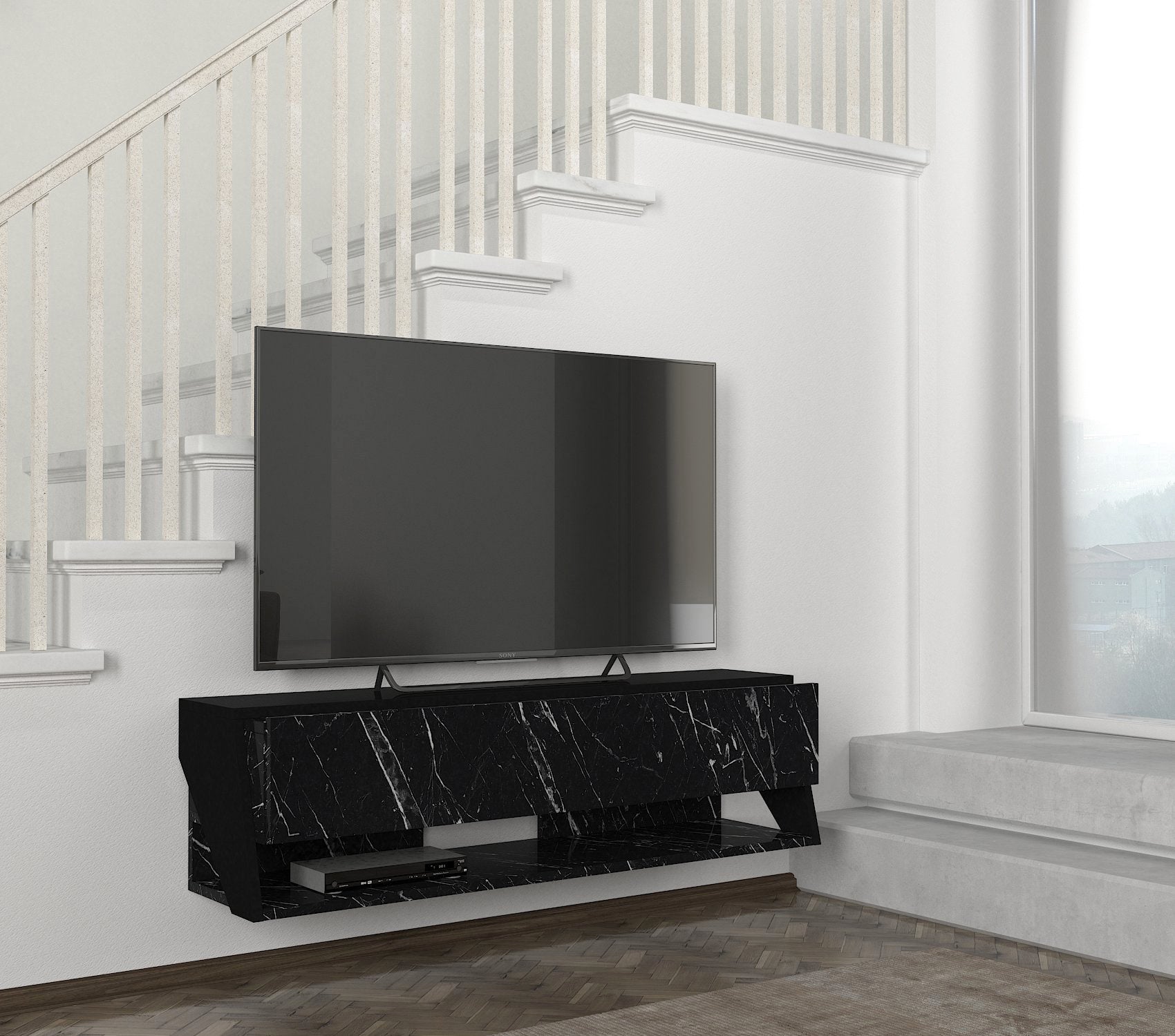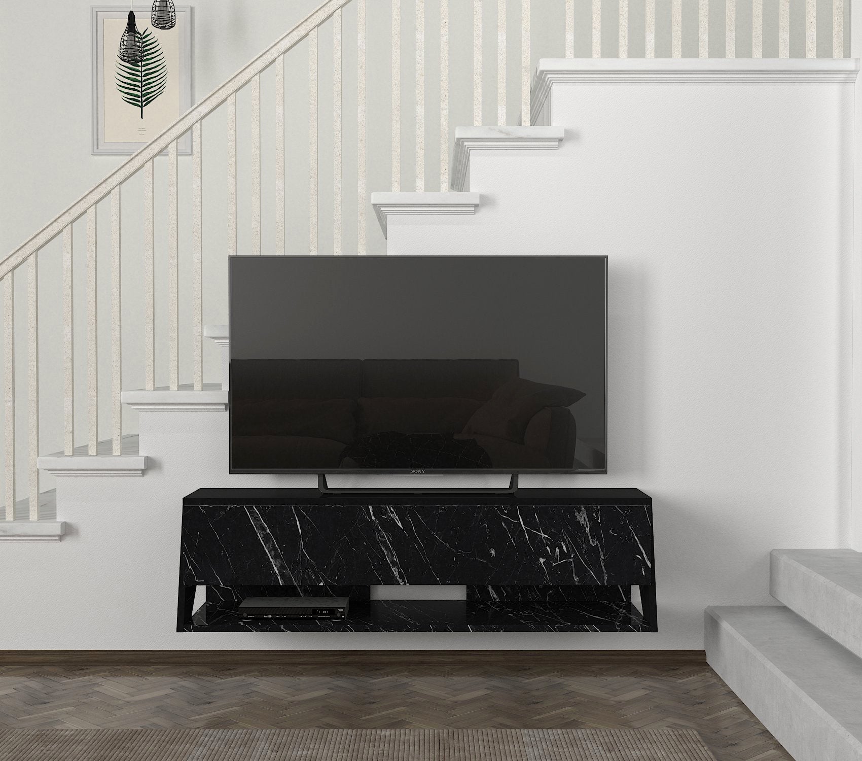 ליטוס DE2569 - שחור דמוי שיש - מזנון טלוויזיה צף