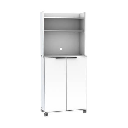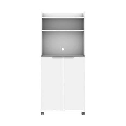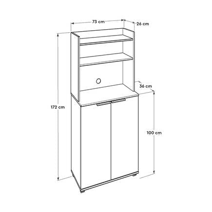 השידה כוללת ארון 2 דלתות נמוך ומעליו 3 מדפי אחסון.