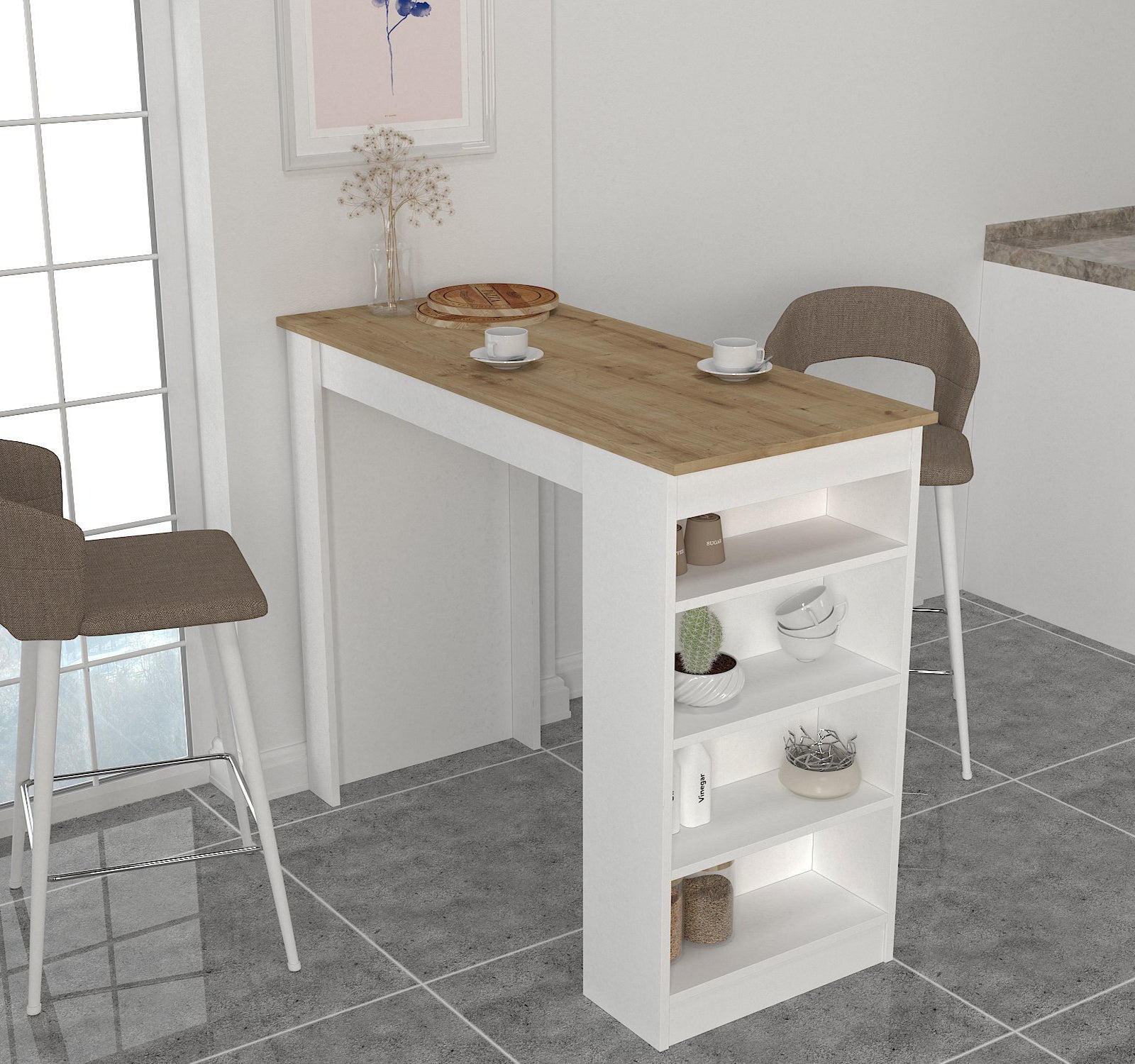 מונקו DE2163 - שולחן בר מעוצב - לבן פלטה אלון