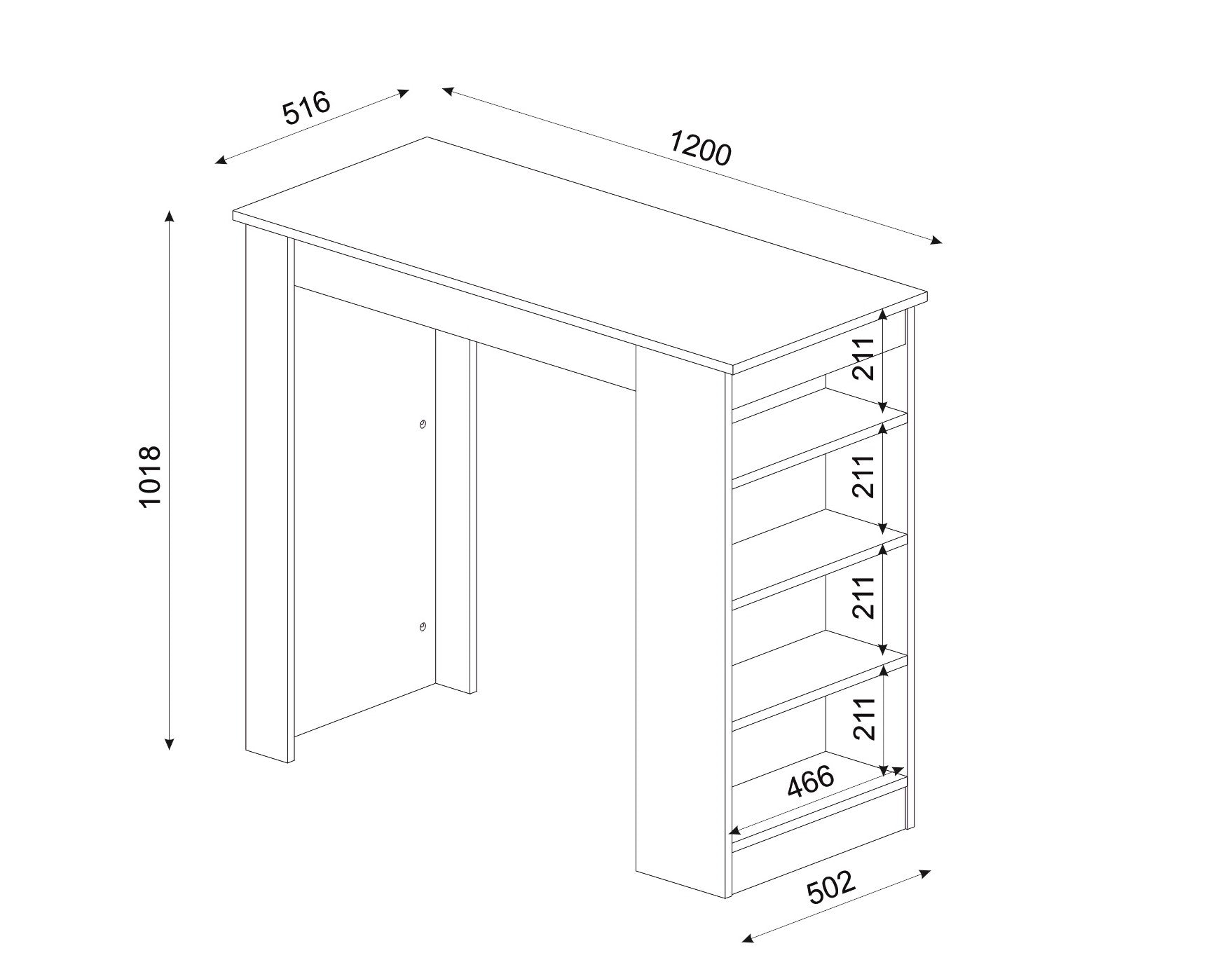 דופן אחת של השולחן מכילה 4 מדפי לצורך אחסון או דקורציה.