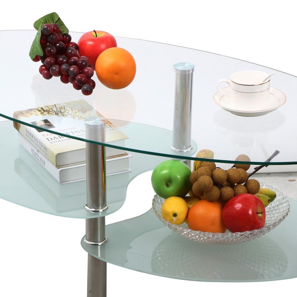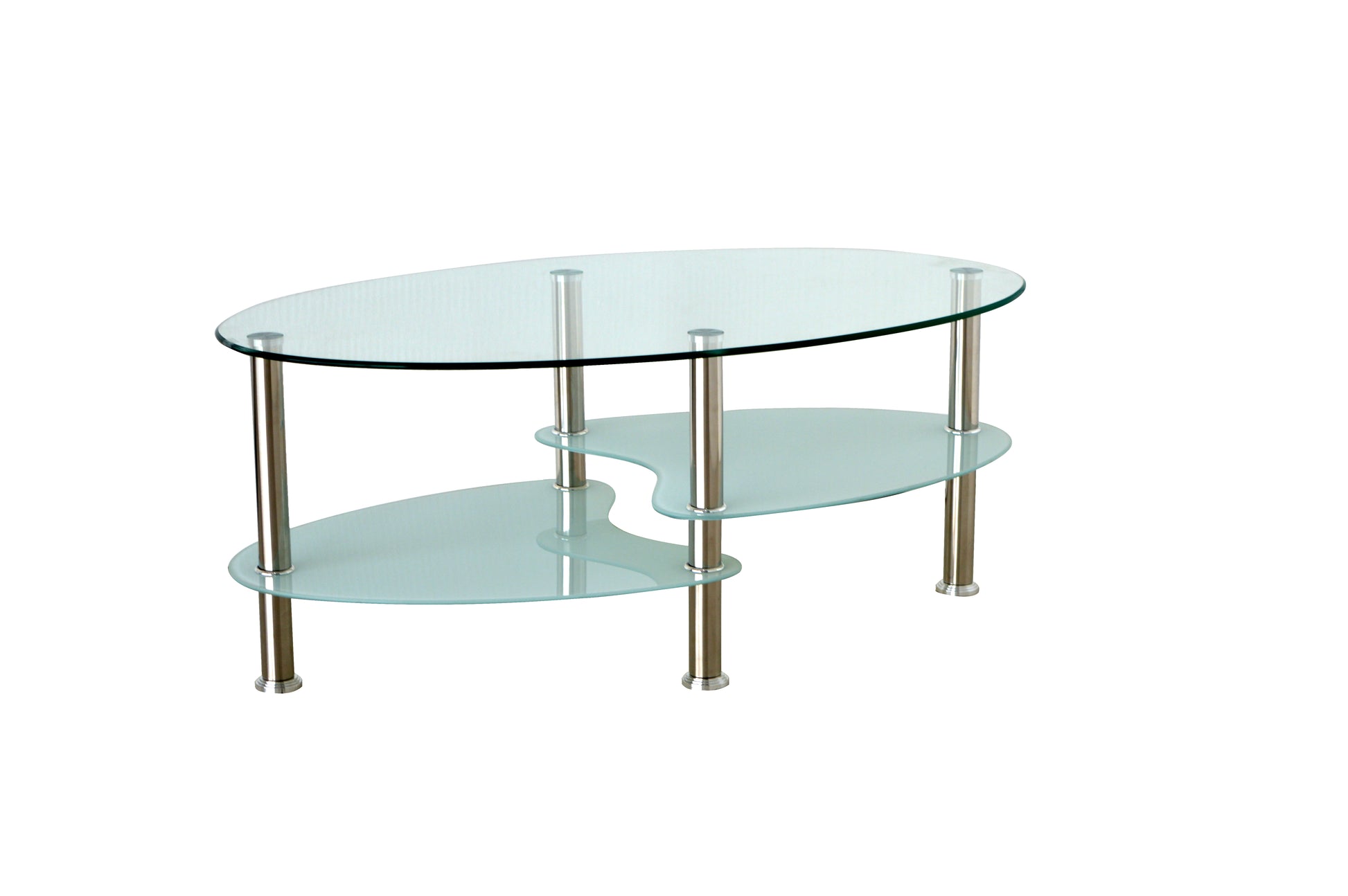 צבע שקוף-חלבי – הכולל שולחן זכוכית שקוף בעובי 8 מ"מ ומדפים תחתונים עשויים זכוכית חלבית בעובי 6 מ"מ.