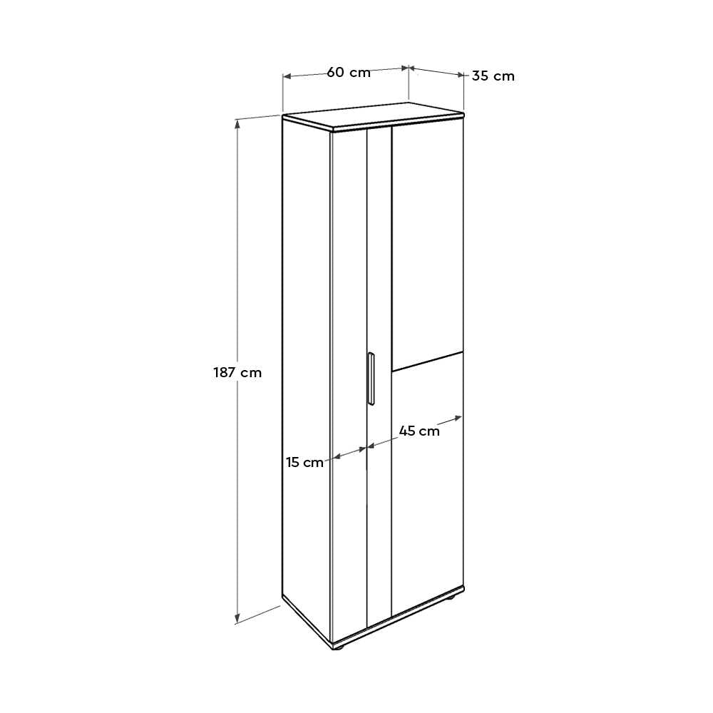 שתי דלתות, האחת ברוחב 45 ס"מ עם מראה בחזיתה, והשניה ברוחב 15 ס"מ.