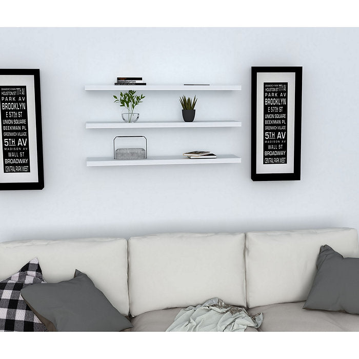 שלישיית מדפים צפים באורכים שווים לעיצוב חלל הבית.