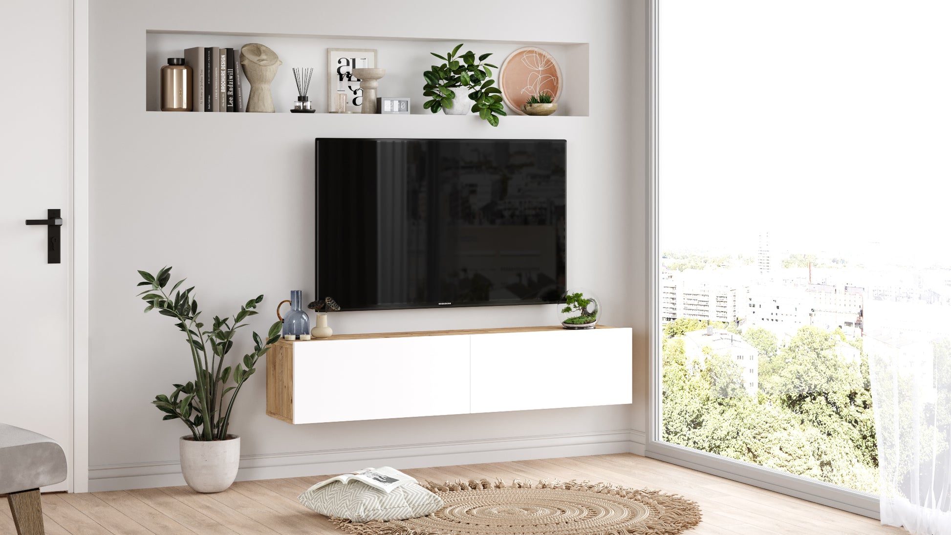 ARISTO - גוף אלון דלתות לבן - מזנון טלוויזיה צף