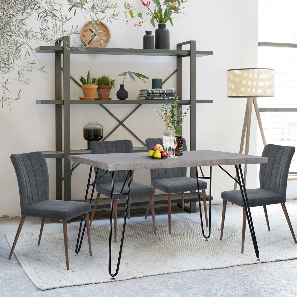 רגלי השולחן עשויות מתכת מושחרת חזקה ויציבה.