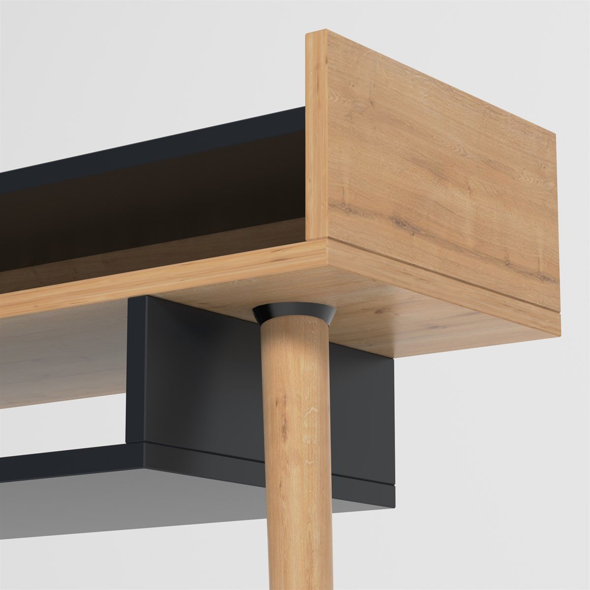 הקונסולה דורשת קיבוע של הרהיט לקיר וננתמכת ב- 2 רגליים העשויות מעץ מלא המחוברות בחוזקה לגוף ומוסיפות מגע טבעי ועמיד לעיצוב.