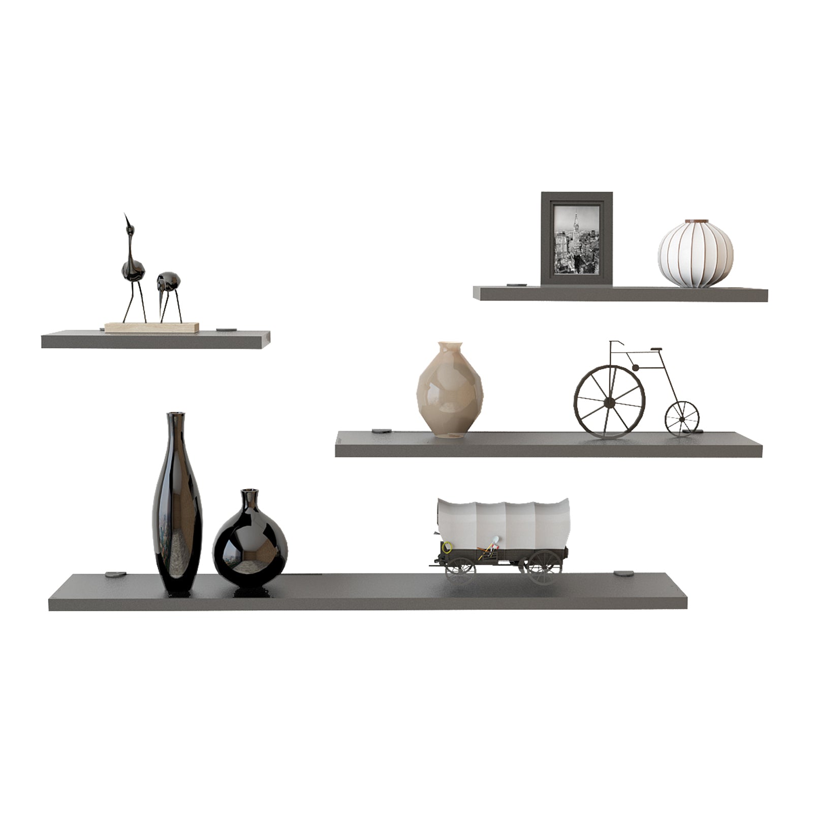 רביעיית מדפים צפים באורכים שונים לעיצוב חלל הבית.