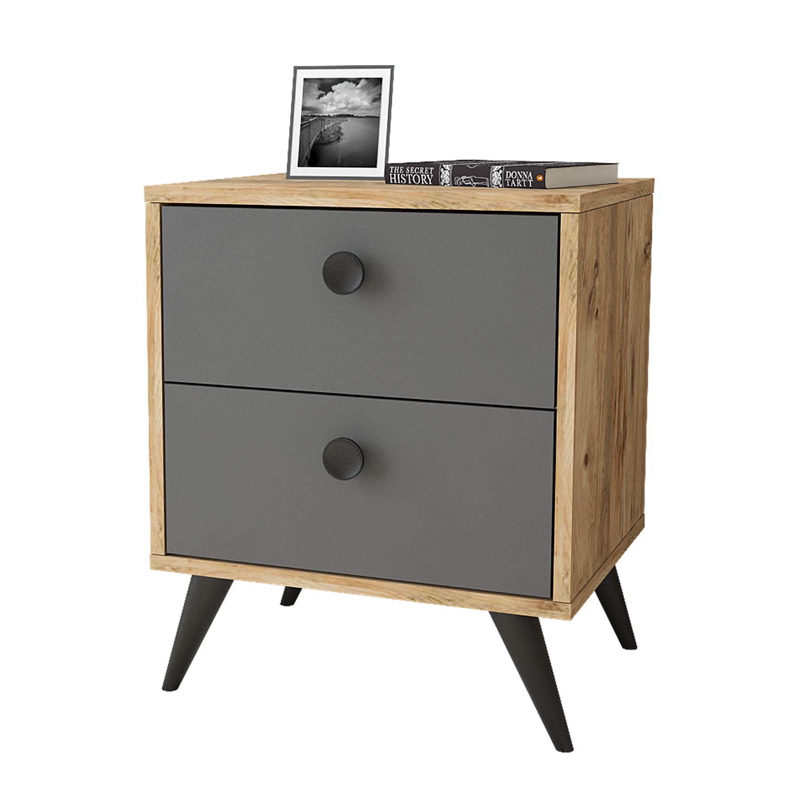 השידה בעלת 2 מגירות מרווחות ומושלמת לאחסון משקפיים, מנורת לילה, ספרים, מסמכים, ארנק, טלפון מטענים וכדו'