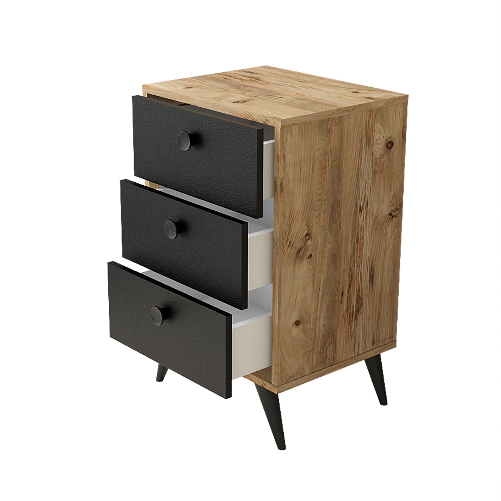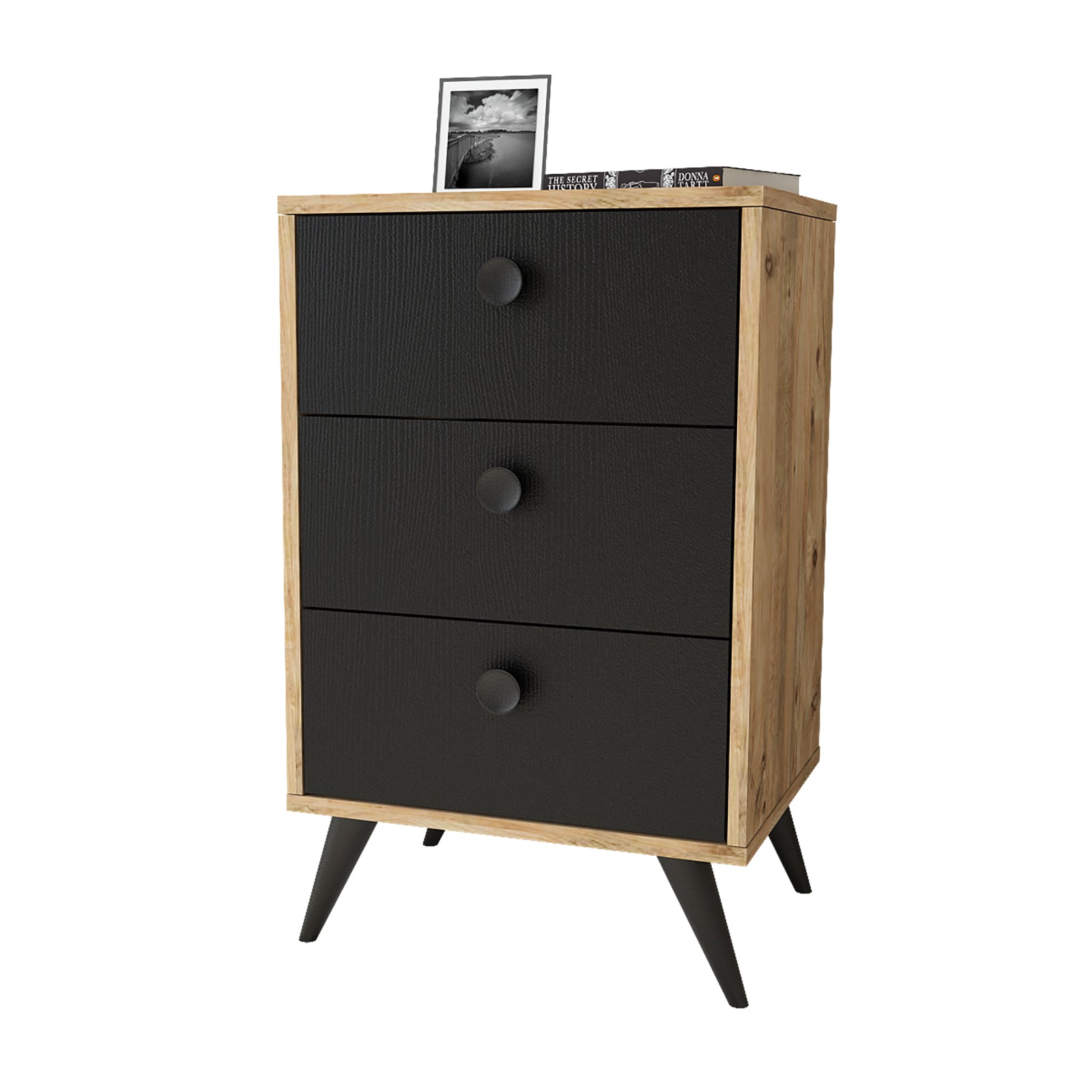 השידה בעלת 3 מגירות מרווחות ומושלמת כשידת לילה ליד המיטה לאחסון משקפיים,