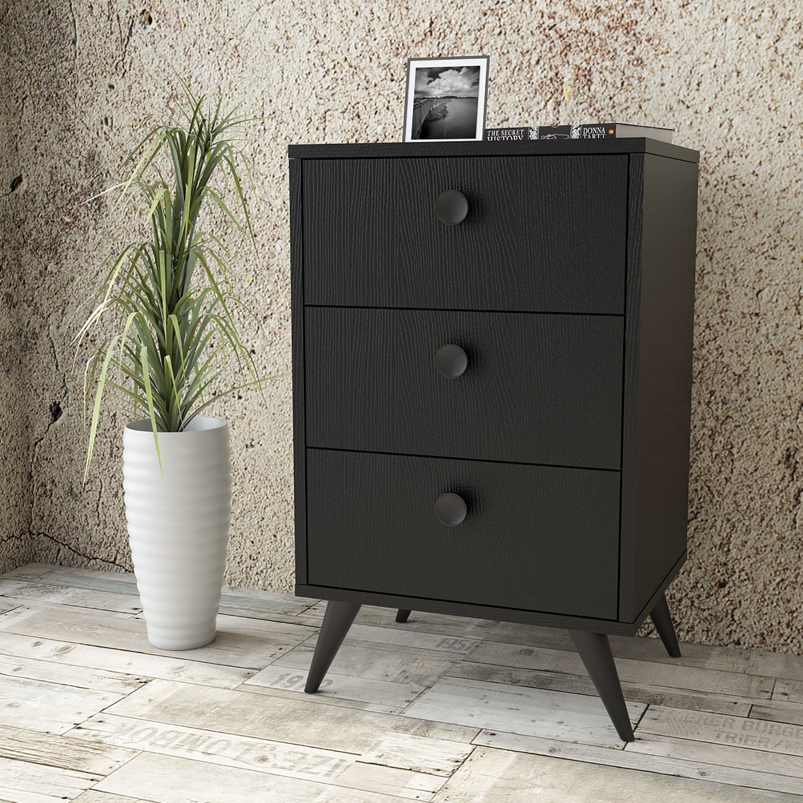 השידה בעלת 3 מגירות מרווחות ומושלמת כשידת לילה ליד המיטה לאחסון משקפיים,
