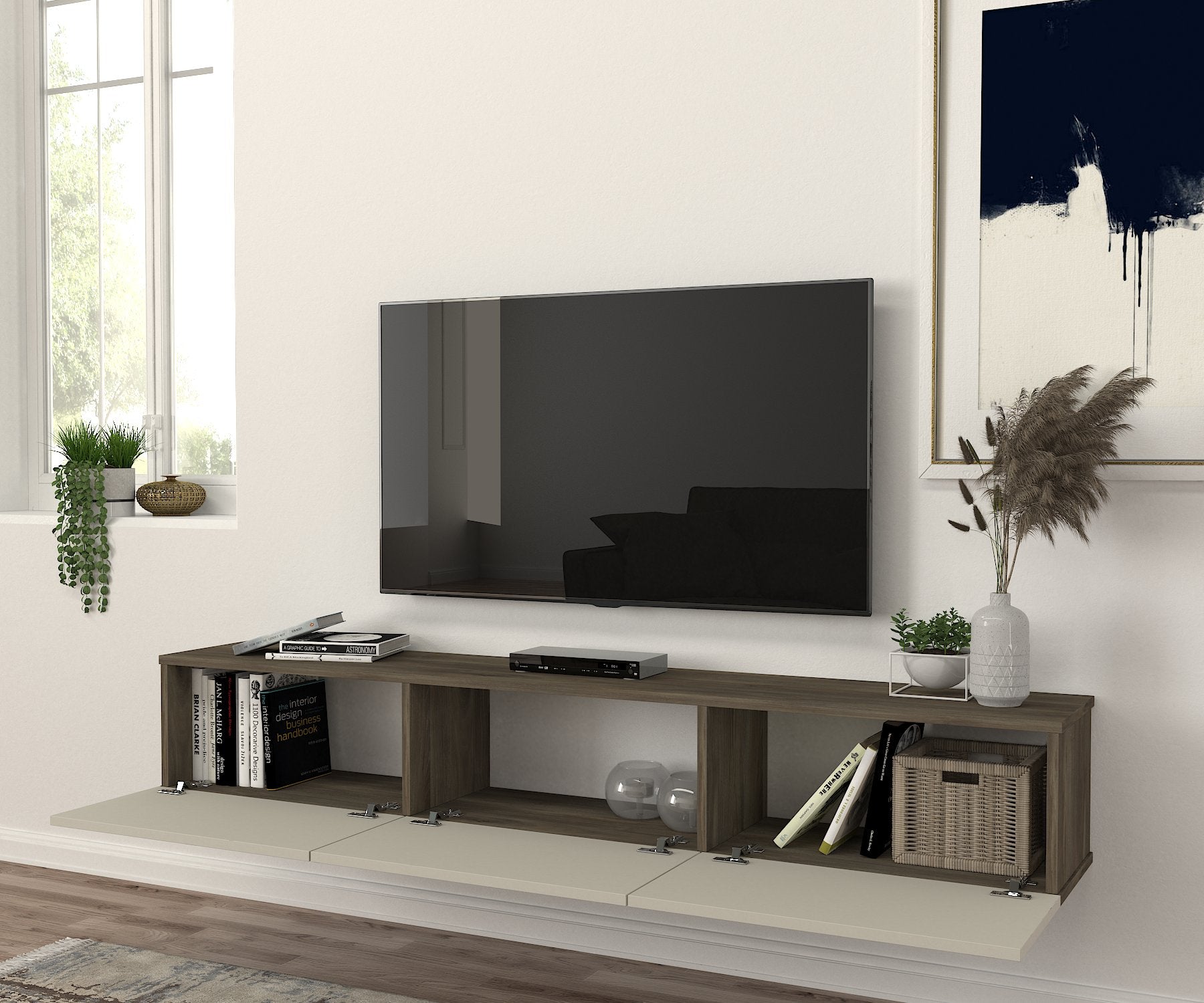 DAMLA - מזנון טלוויזיה צף - אגוז - קרם