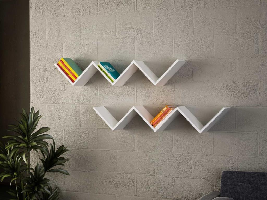 זוג מדפי אחסון בצורת זיג זג בצבע לבן.