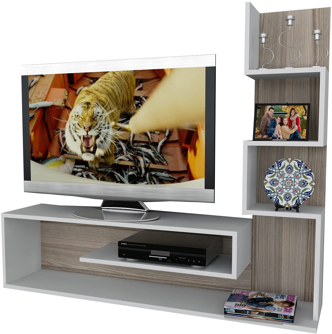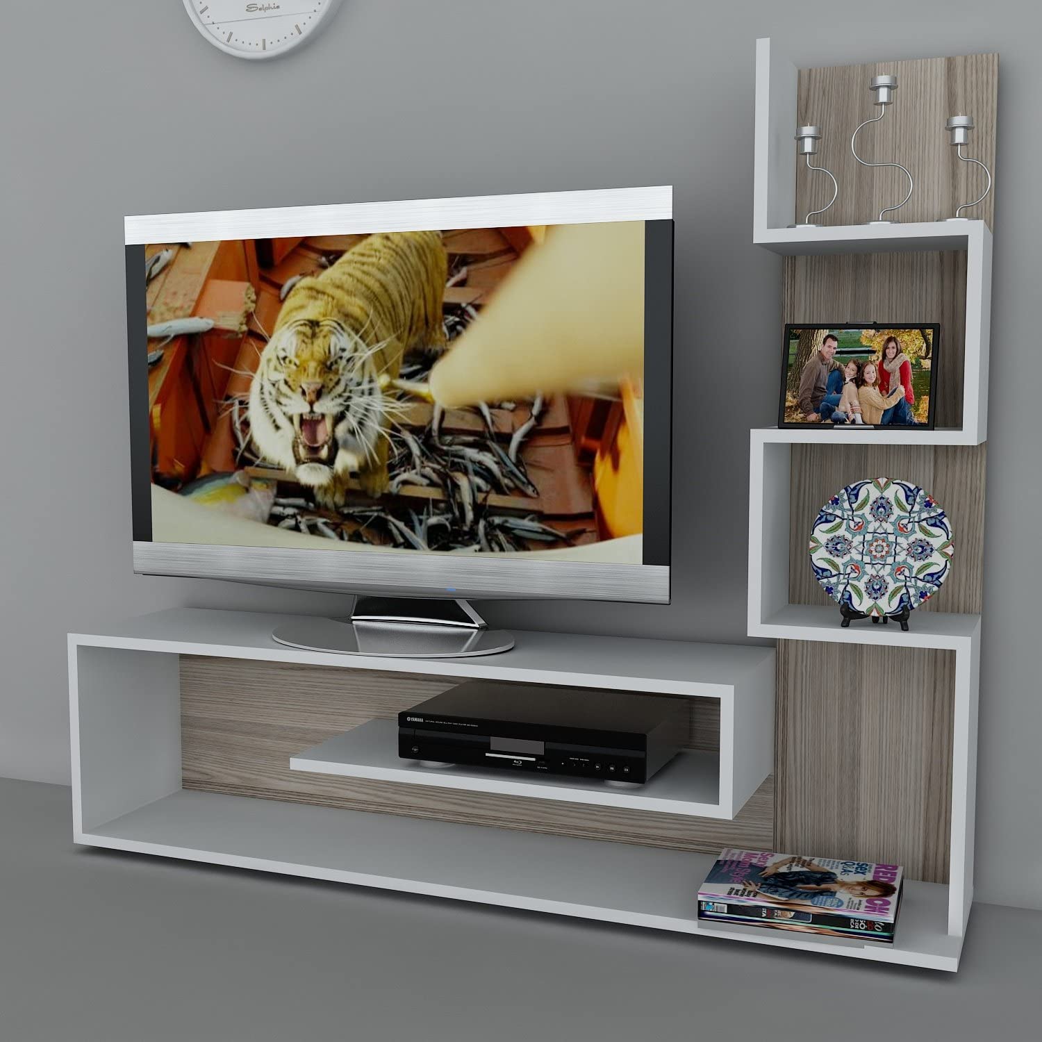 מזנון טלוויזיה נוח בעיצוב נקי ועכשווי בצבעי לבן וחום בהיר בשילוב ספרייה מעוצבת שישדרג לכם את הסלון. מתאים כבסיס לטלוויזיה או לאחסון כל פריט שתחפצו בסלון או בחדר המגורים.