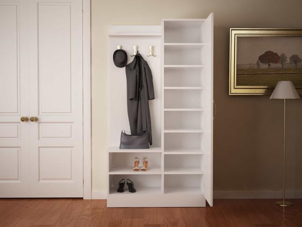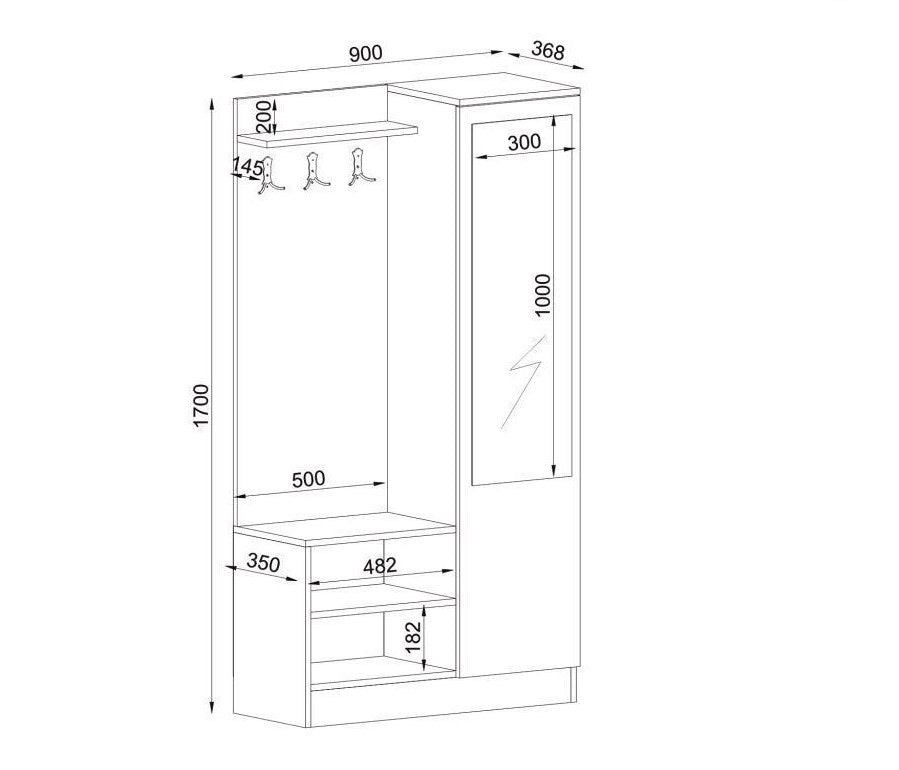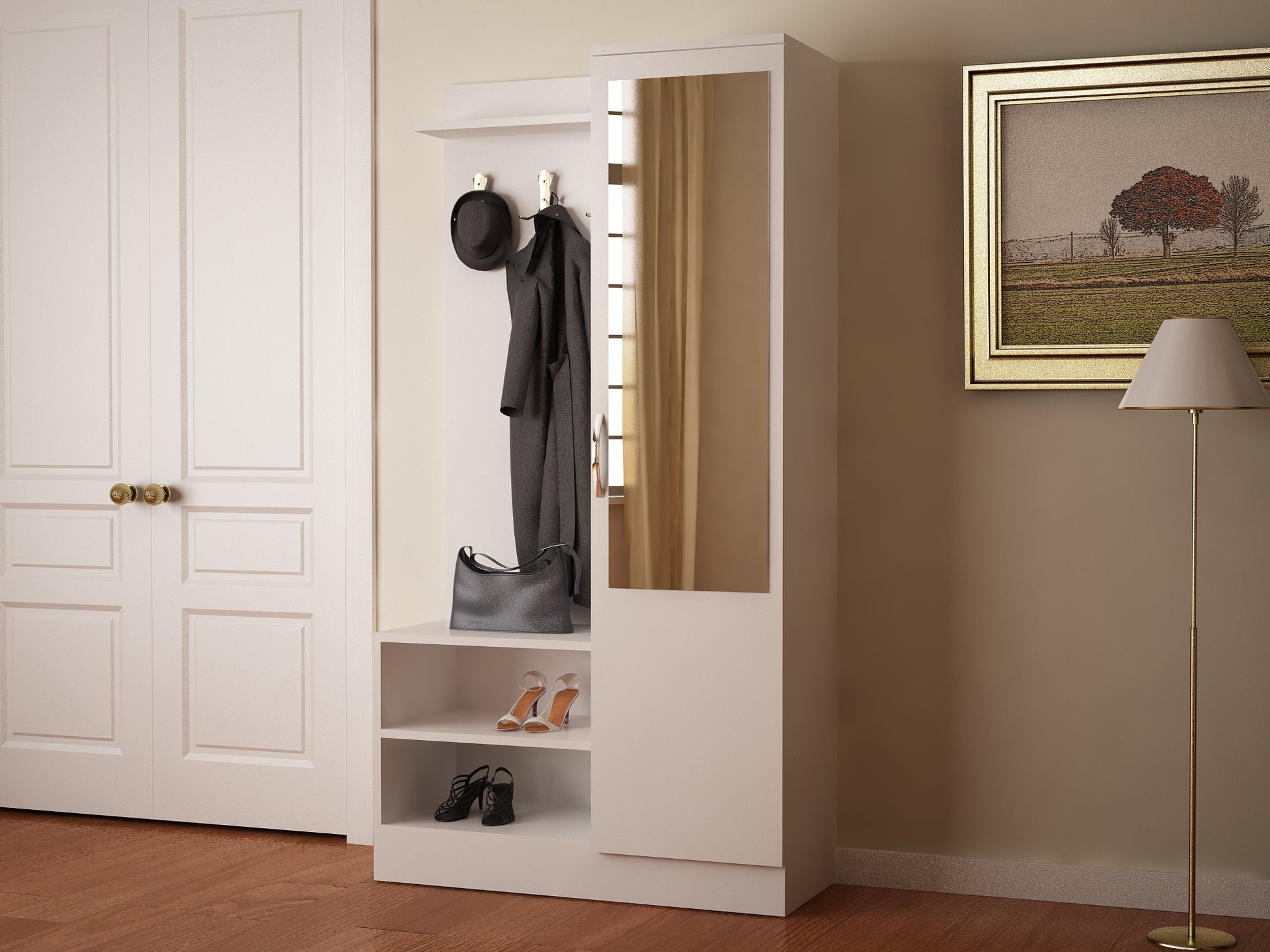 כוללת 10 מדפים, דלת חזית עם מראה לשימוש נוח, 3 מתלים מתפצלים ומדף עליון.