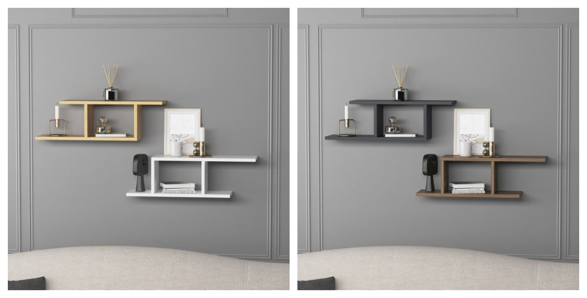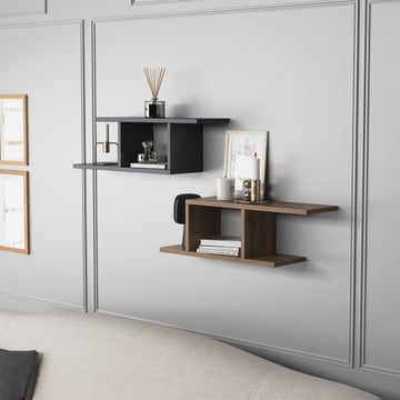 Deren– זוג מדפים מעוצבים - פחם- אגוז