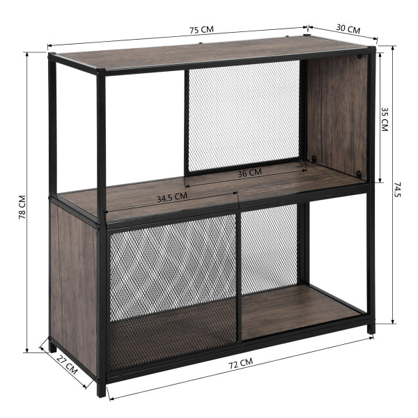 2 מדפים עשויים MDF בצבע אגוז כהה, יציבים ועמידים.