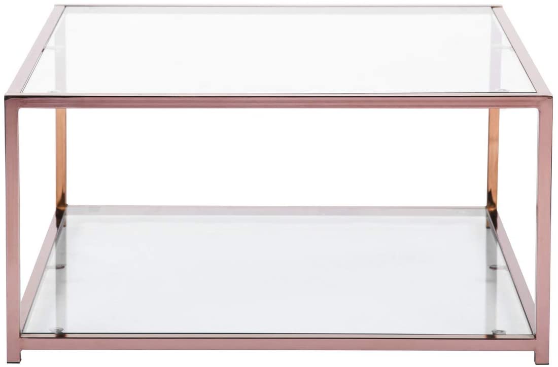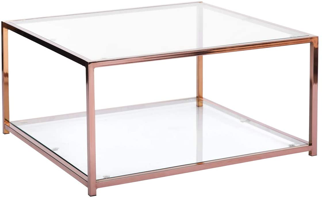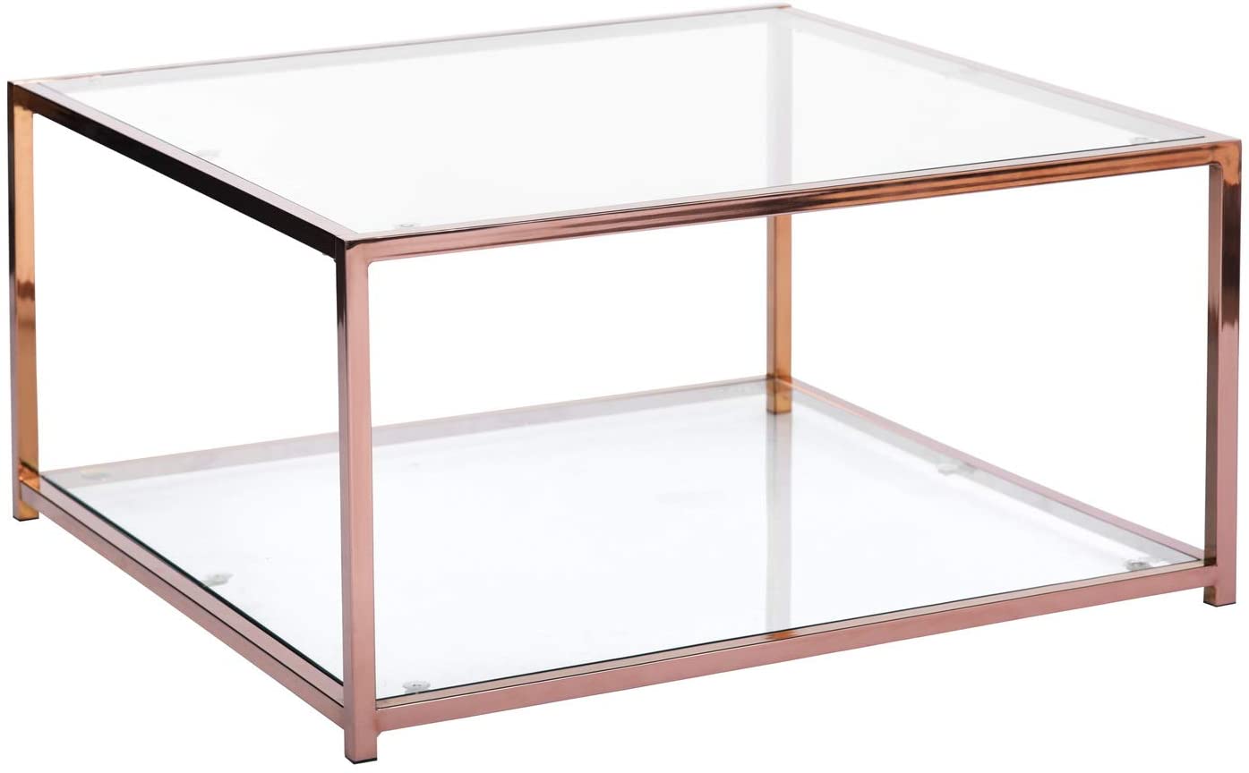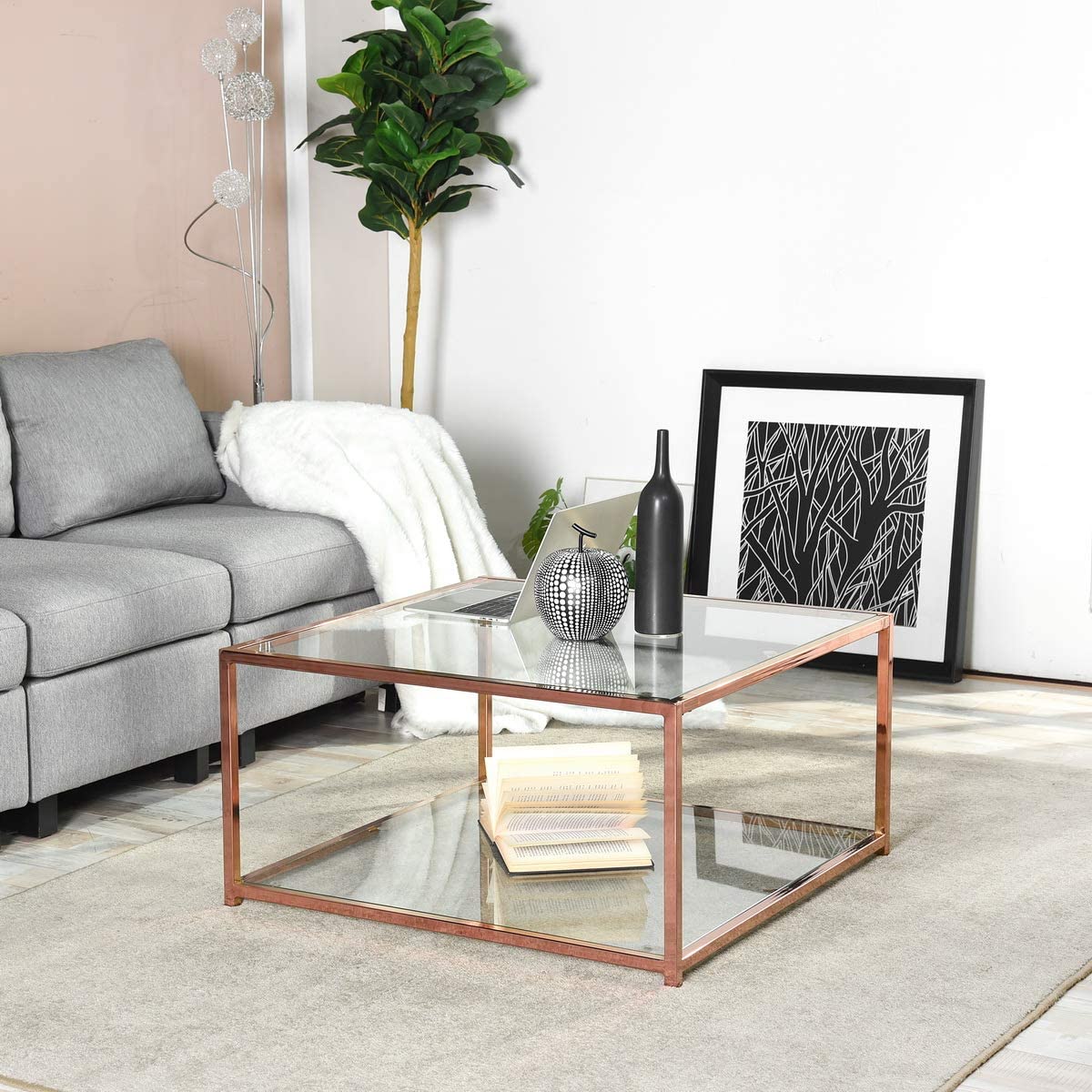 שולחן סלון ריבועי בעיצוב חדשני בשילוב יוקרתי של זכוכית ומתכת.