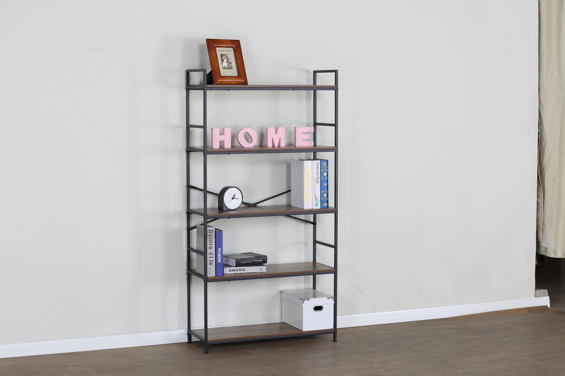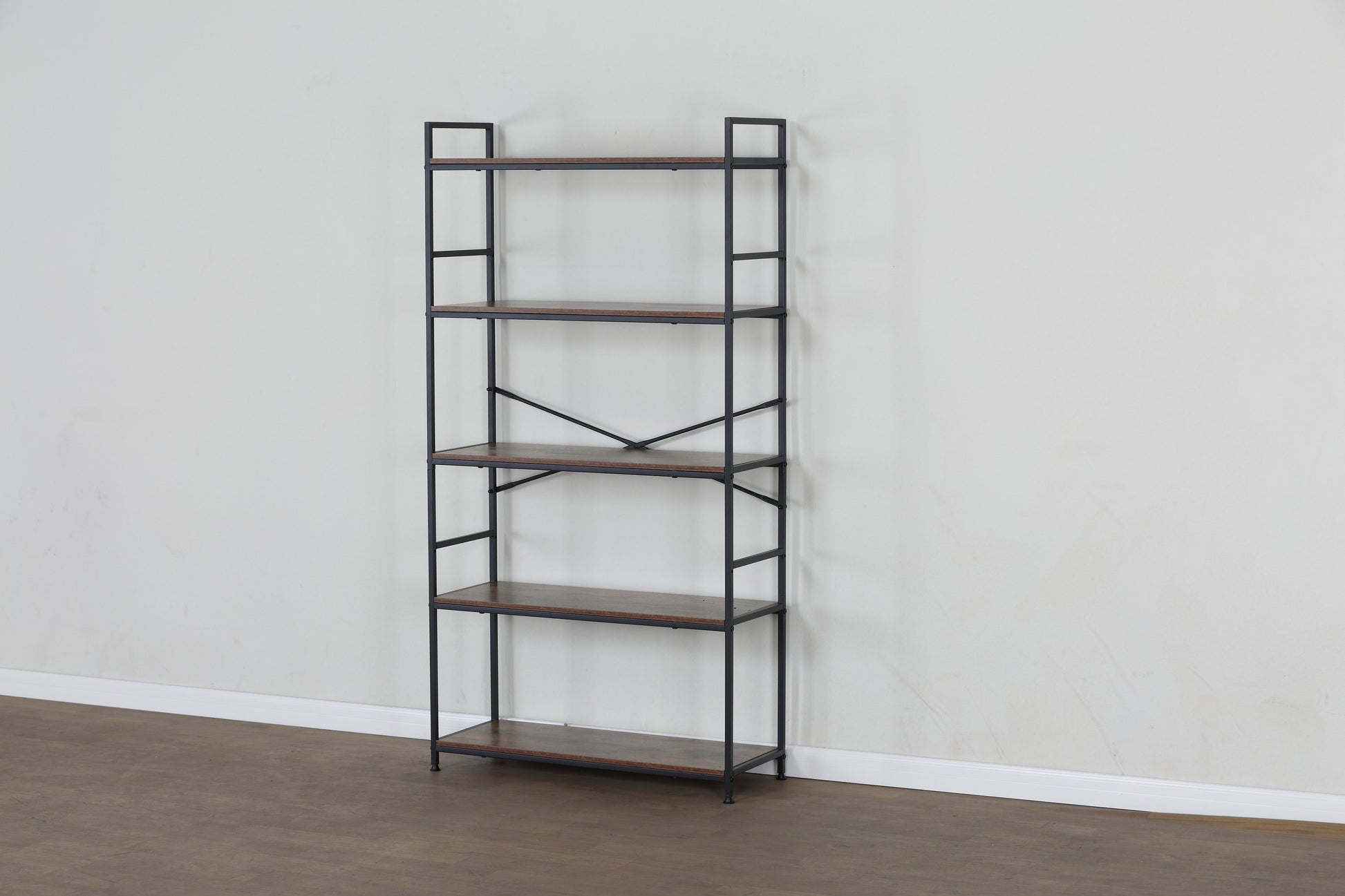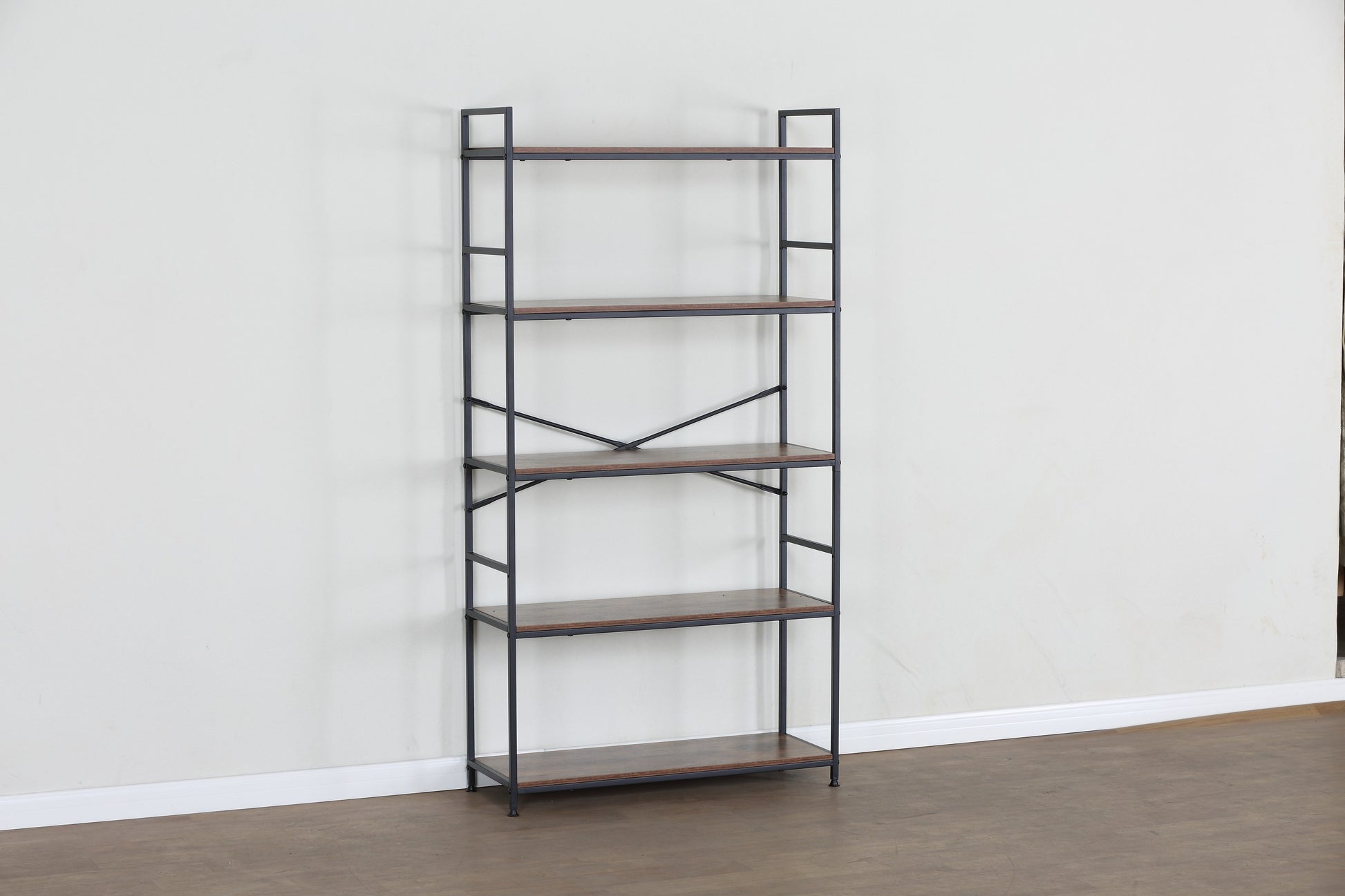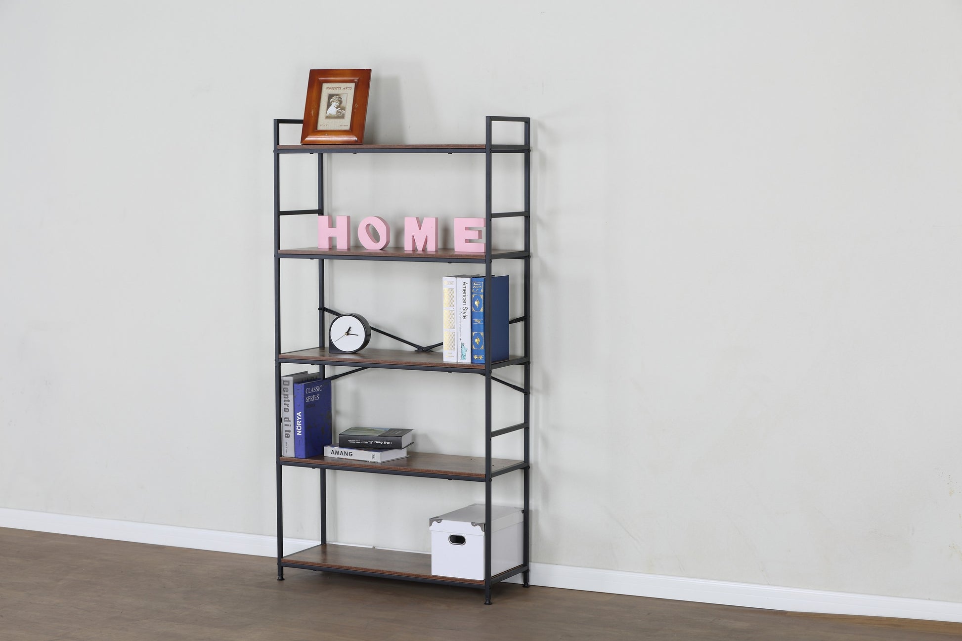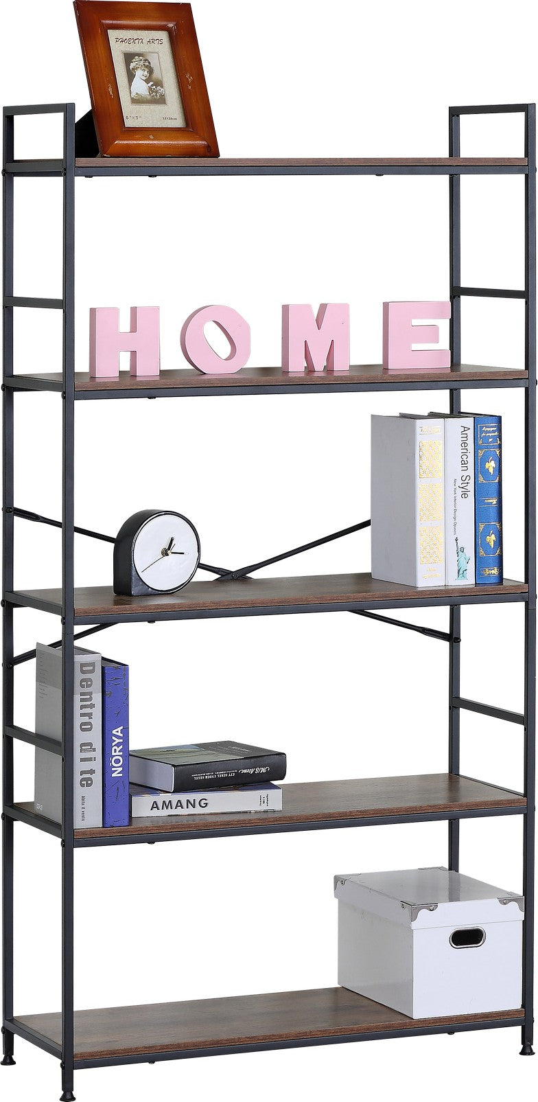 חמישה מדפים עשויים שבבית דחוסה בציפוי מלמין איכותי בצבע אגוז.