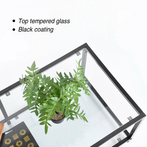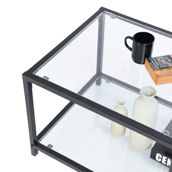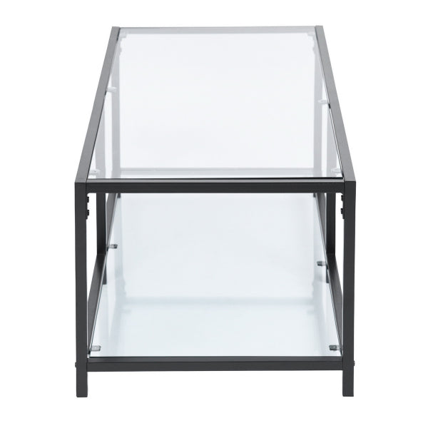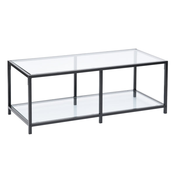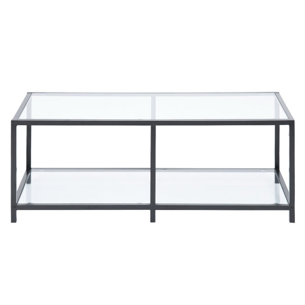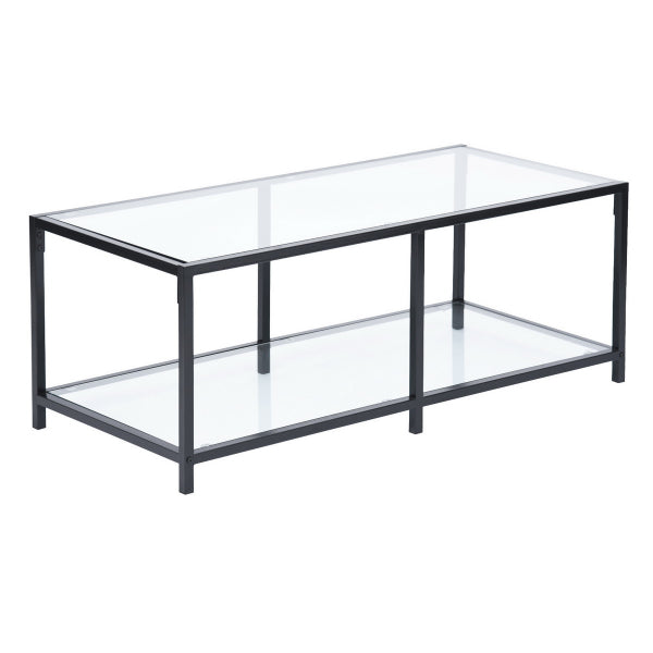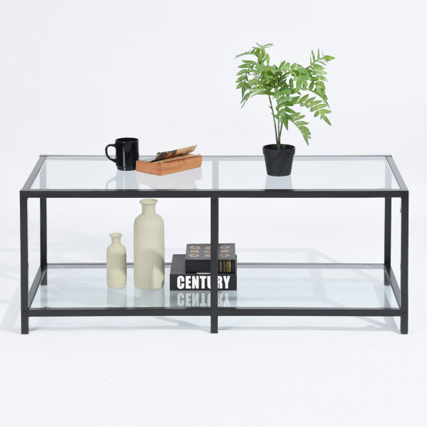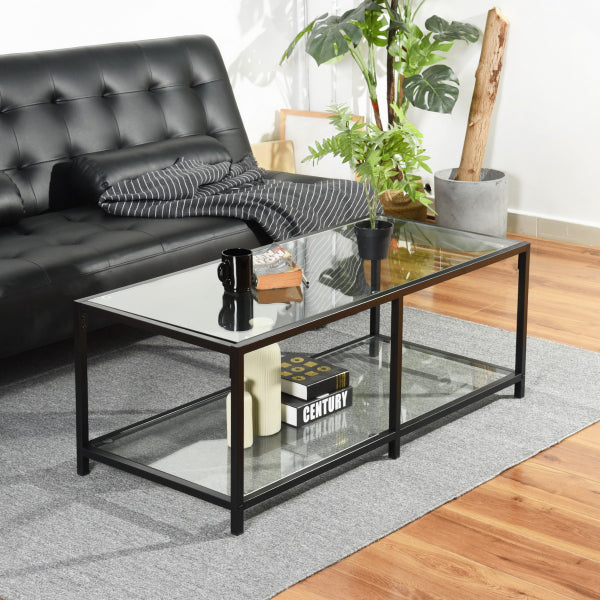 שולחן סלון מלבני בעיצוב חדשני בשילוב יוקרתי של זכוכית ומתכת.