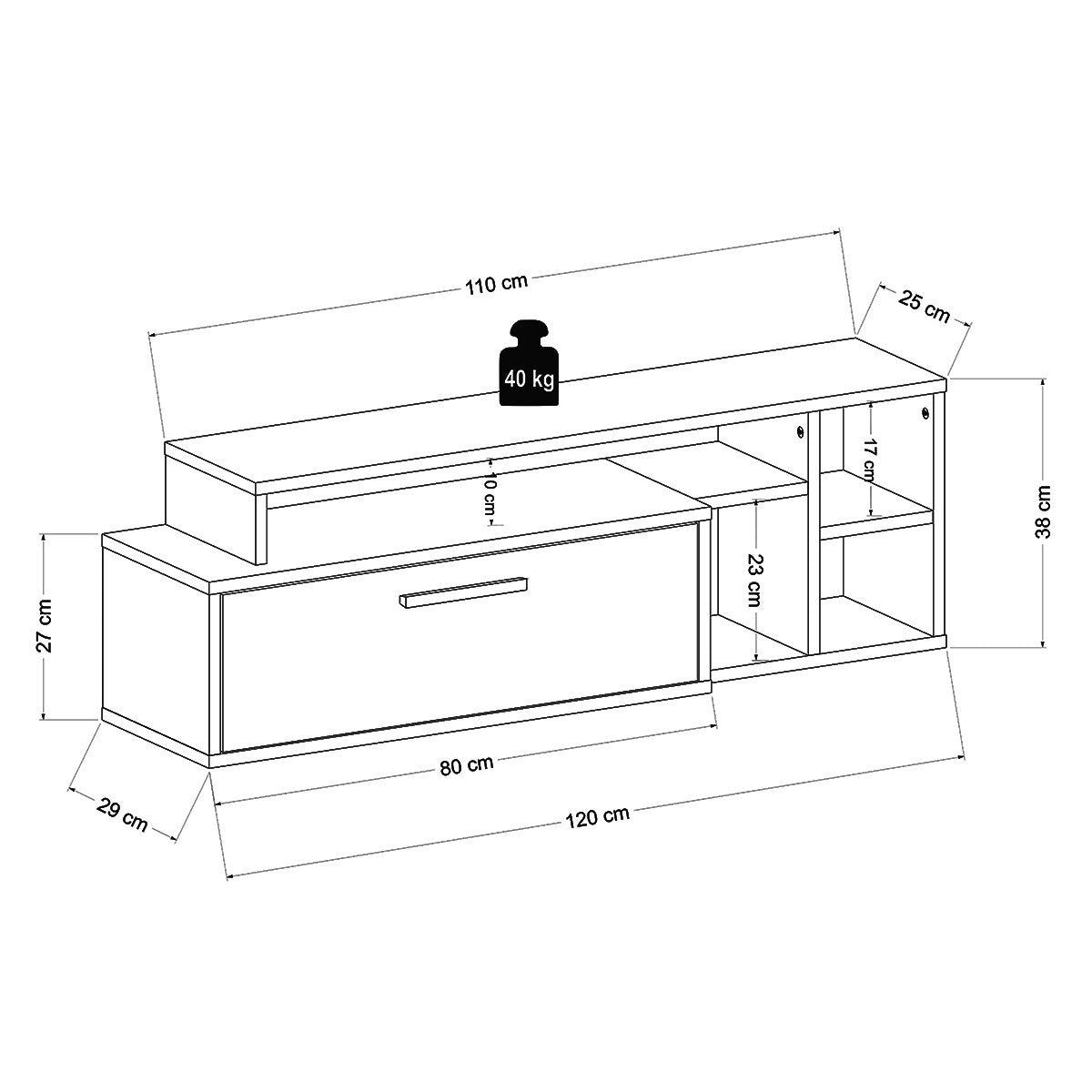 המזנון מתוכנן במיוחד כדי לספק פתרון פרקטי לחללים קטנים. מורכב משני חלקים נפרדים: ארון תחתון עם דלת ומדף עליון פתוח, הניתנים להעמדה במגוון דרכים שונות ומאפשרים להתאים את גודל המזנון לחלל המגורים הזמין. תכונה זו מאפשרת למקם את יחידת הטלוויזיה גם בפינה של החדר.