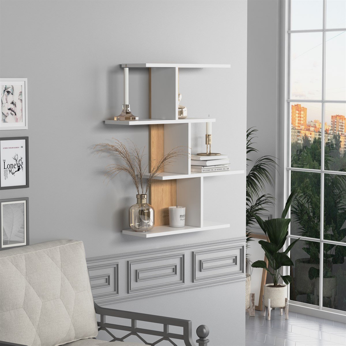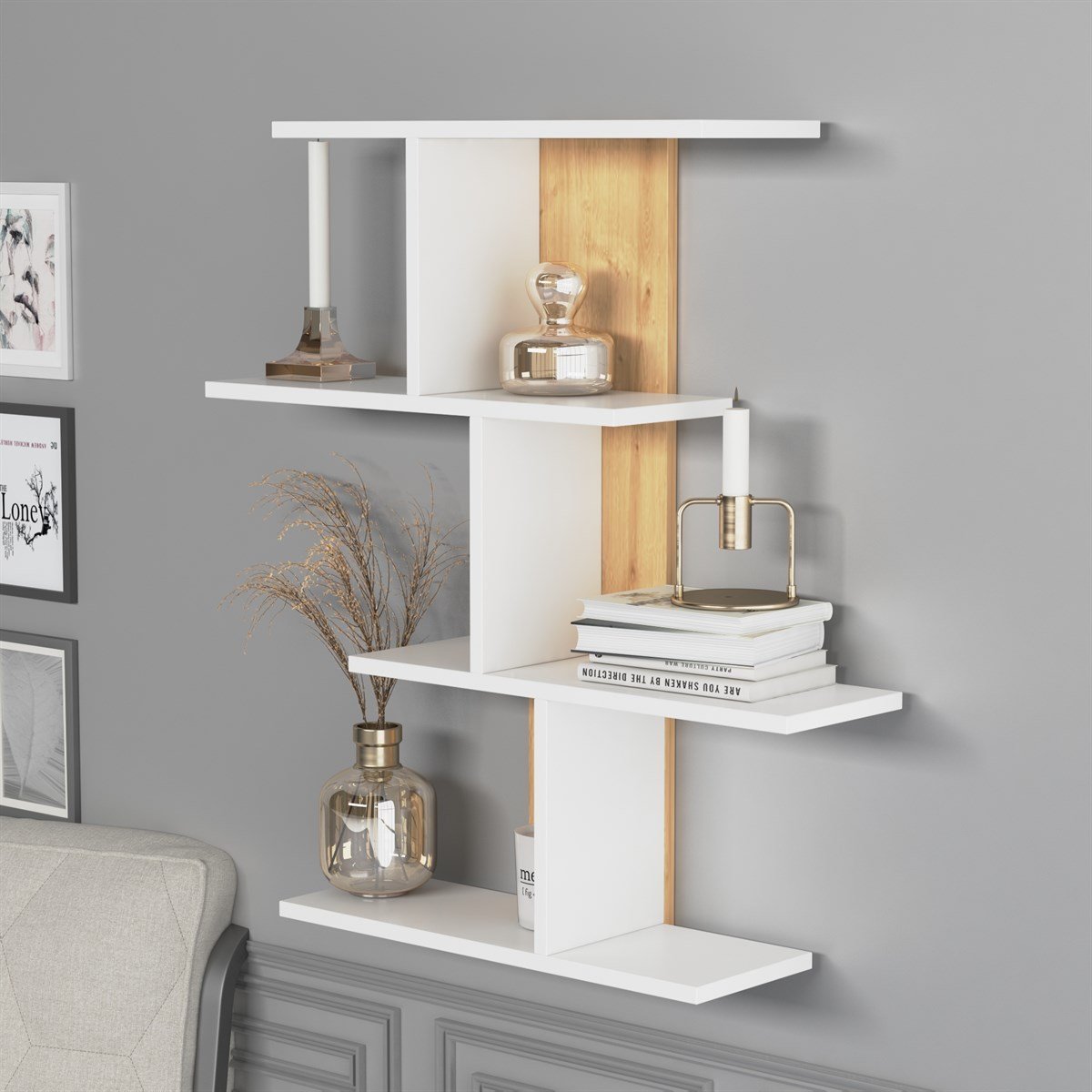 המדף מאפשר לנו לקשט את הקיר עם אובייקטים שונים, כגון: פסלונים, פרחים, ספרים, חפצים דקורטיביים קטנים וכו', וליצור קומפוזיציות מעניינות