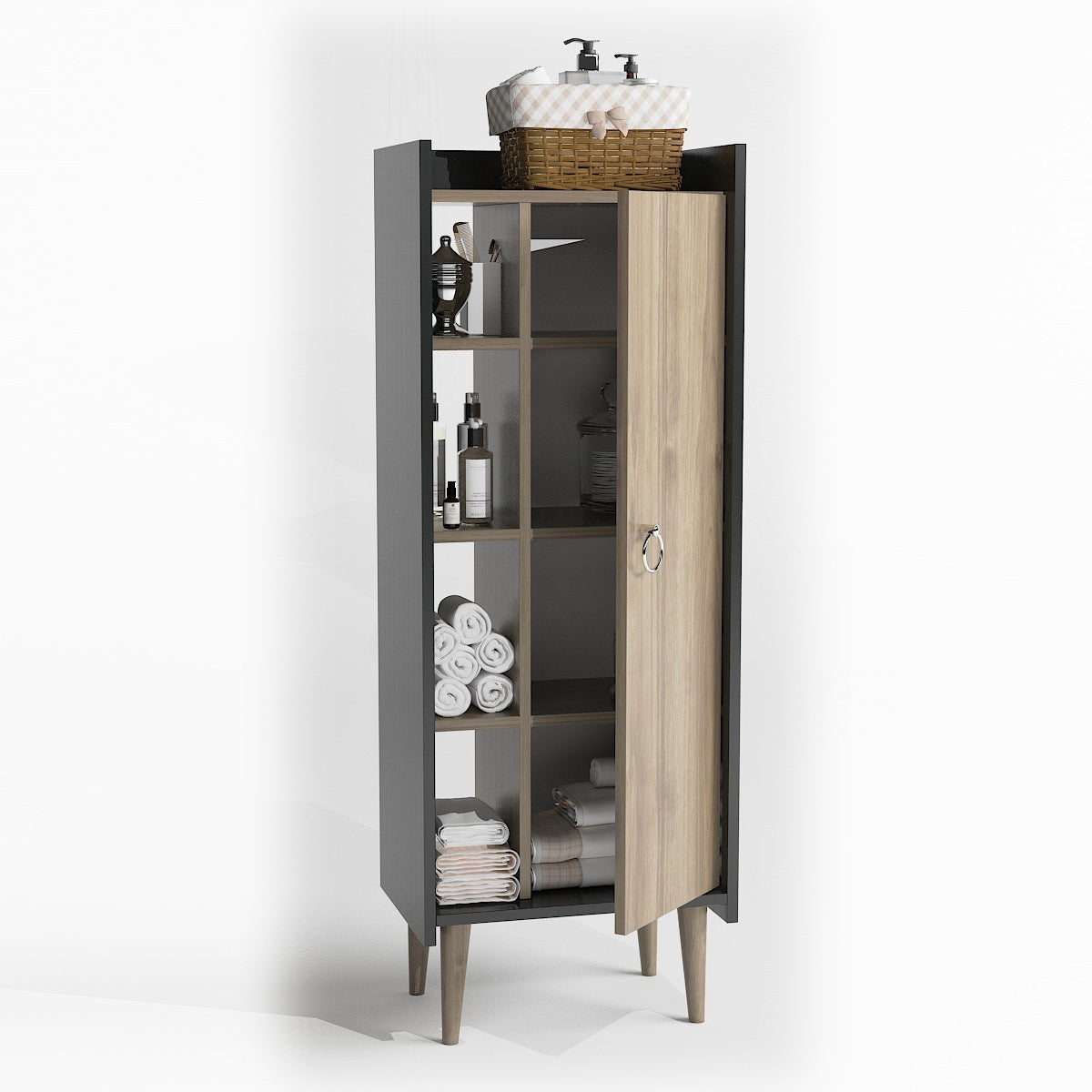 לארון דלת ומאחוריה 4 מדפים מרווחים ו-4 מדפים קטנים פתוחים.