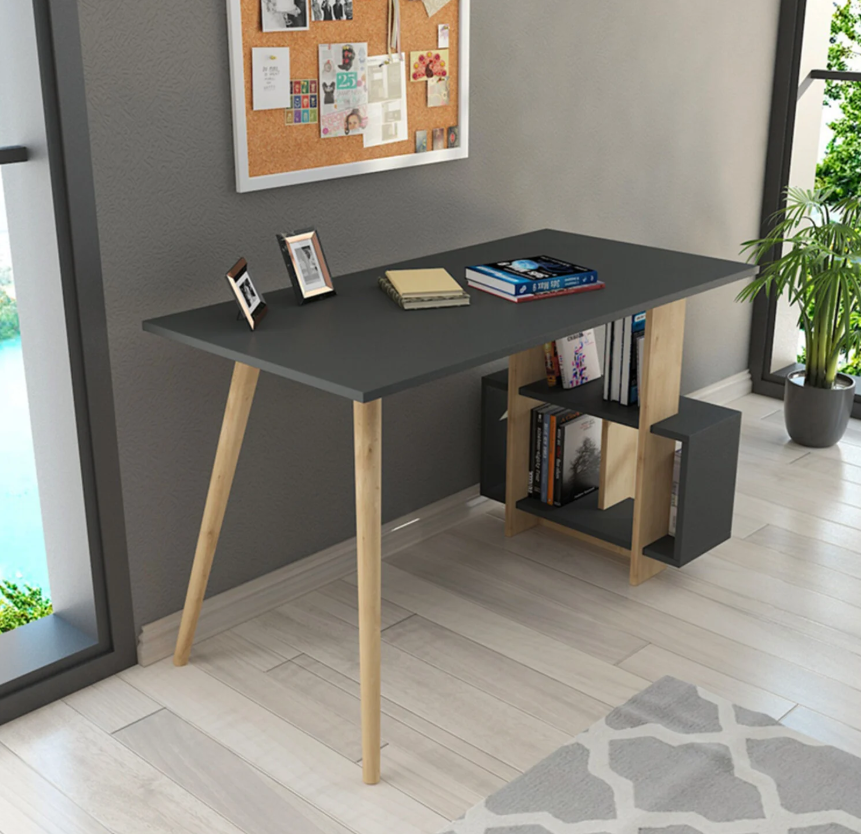 כולל ספרייה עם 4 חללי אחסון בצד הימני התחתון של השולחן.