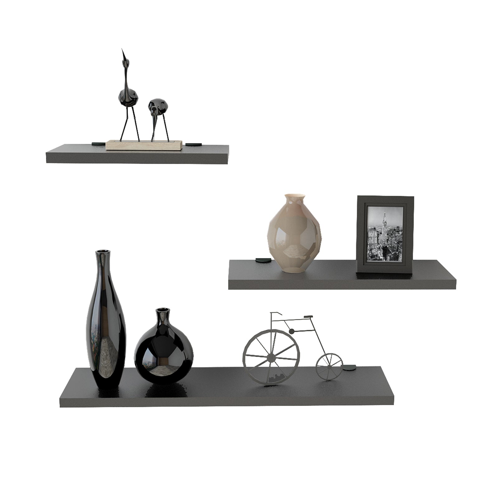שלישיית מדפים צפים באורכים שונים לעיצוב חלל הבית.