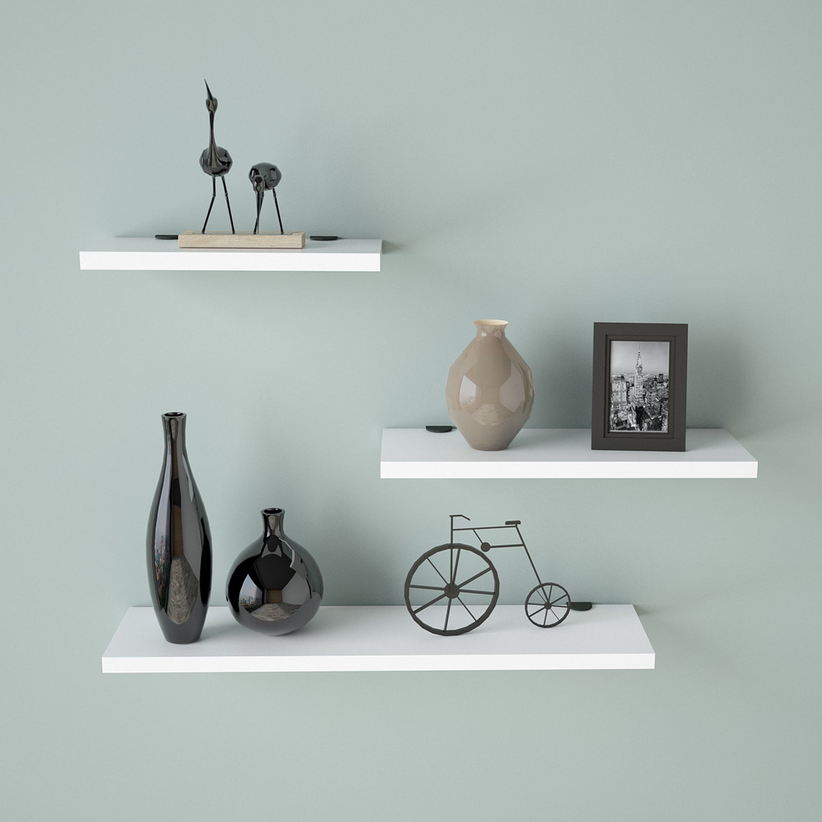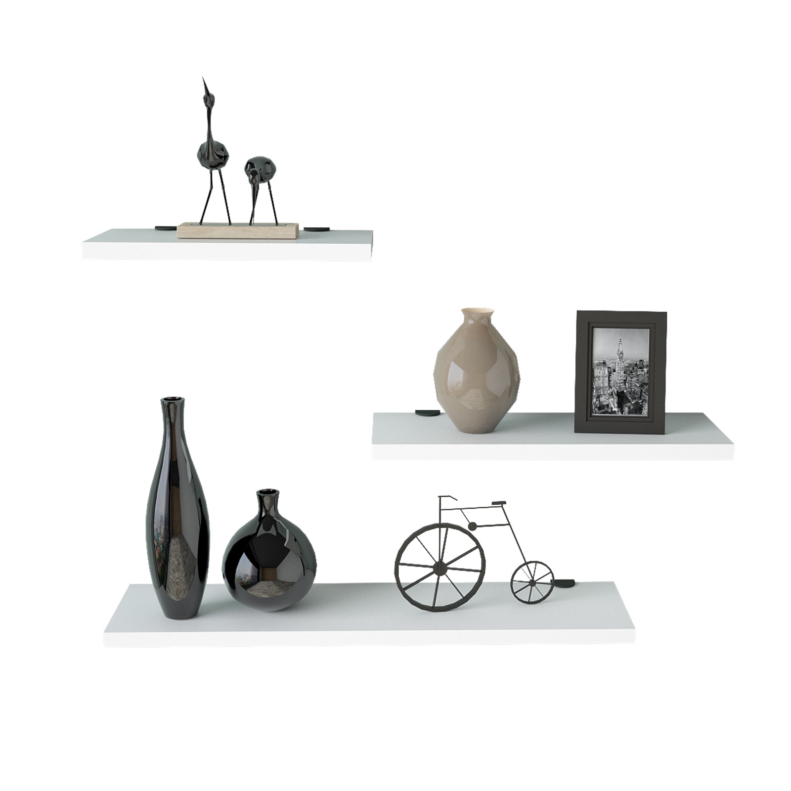 שלישיית מדפים צפים באורכים שונים לעיצוב חלל הבית.