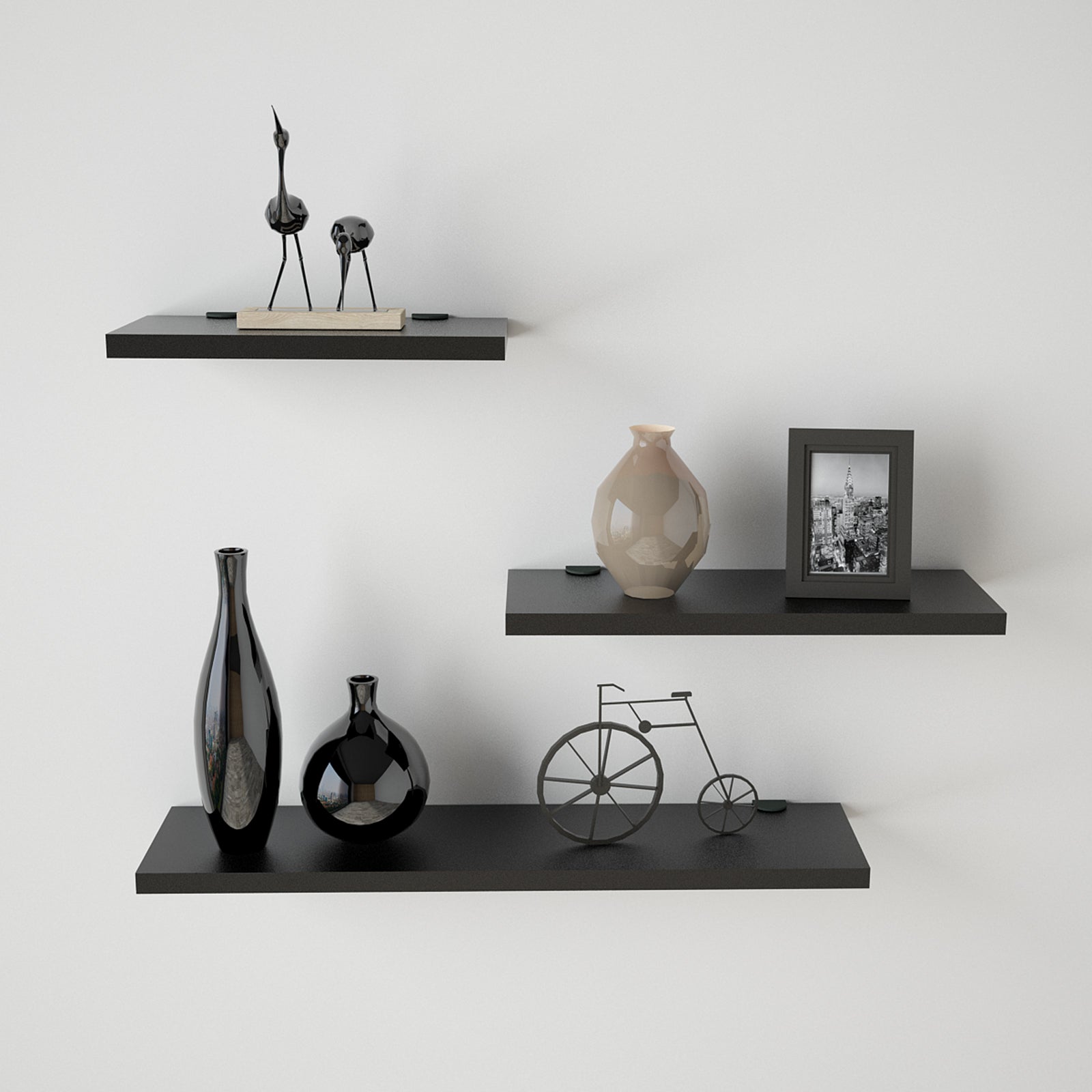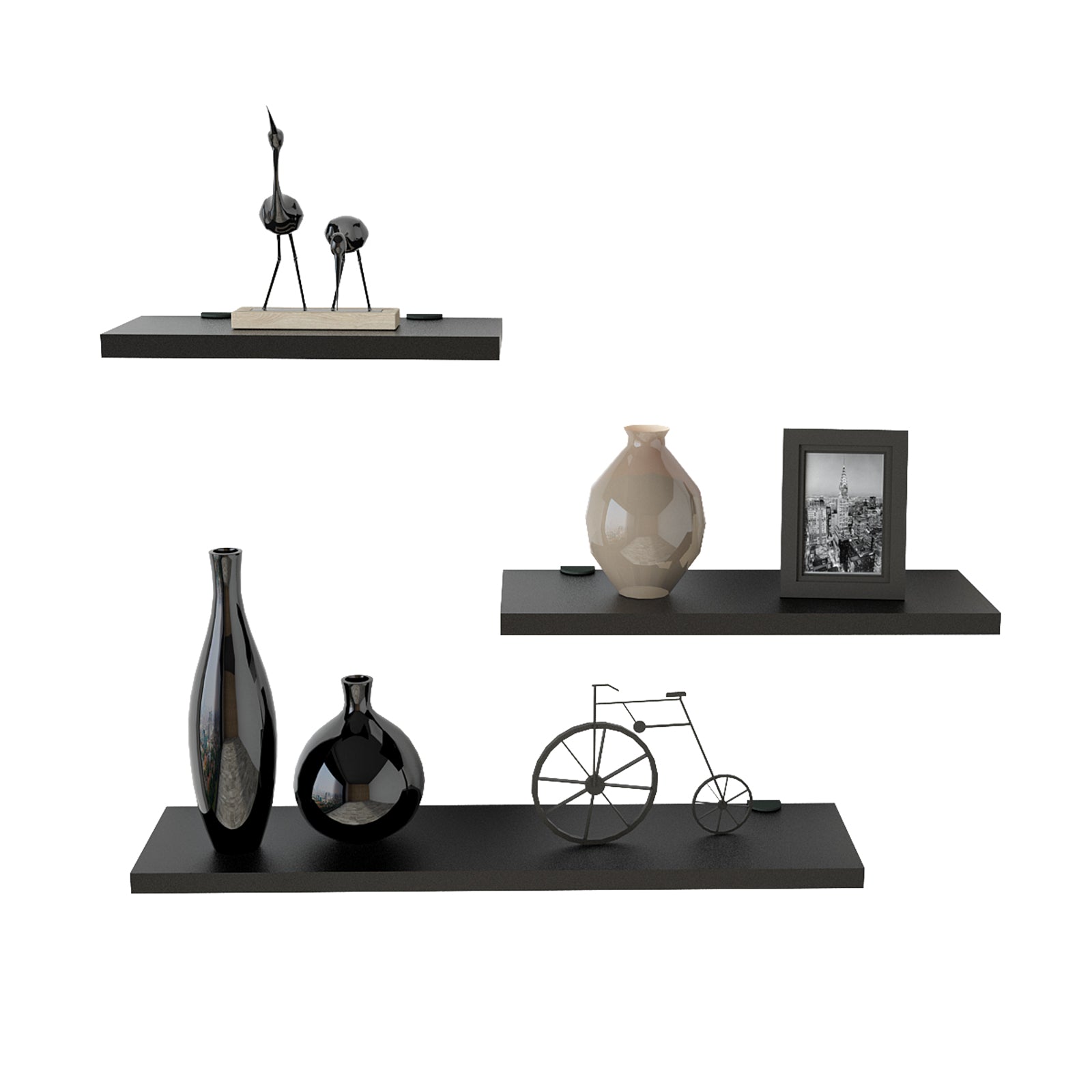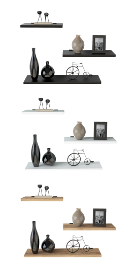 שלישיית מדפים צפים באורכים שונים לעיצוב חלל הבית.