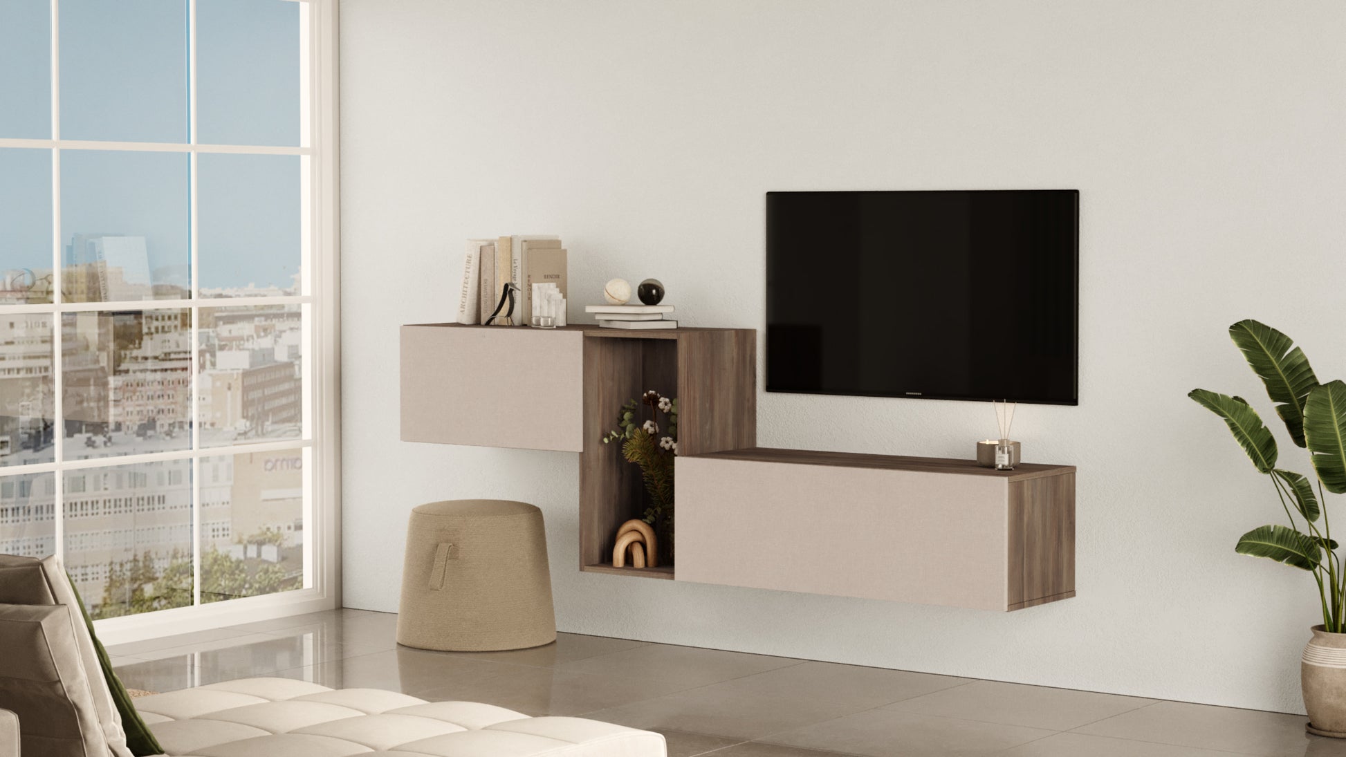 Nox KBL2-CV- שמנת-חום - מזנון טלוויזיה צף