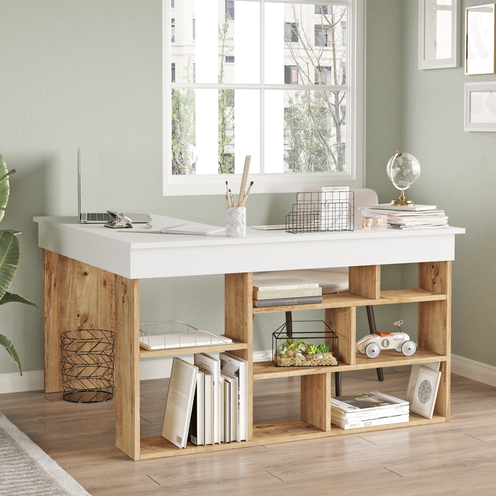 stora CT5 - לבן-אגוז - עמדת עבודה פינתית עם ספריה