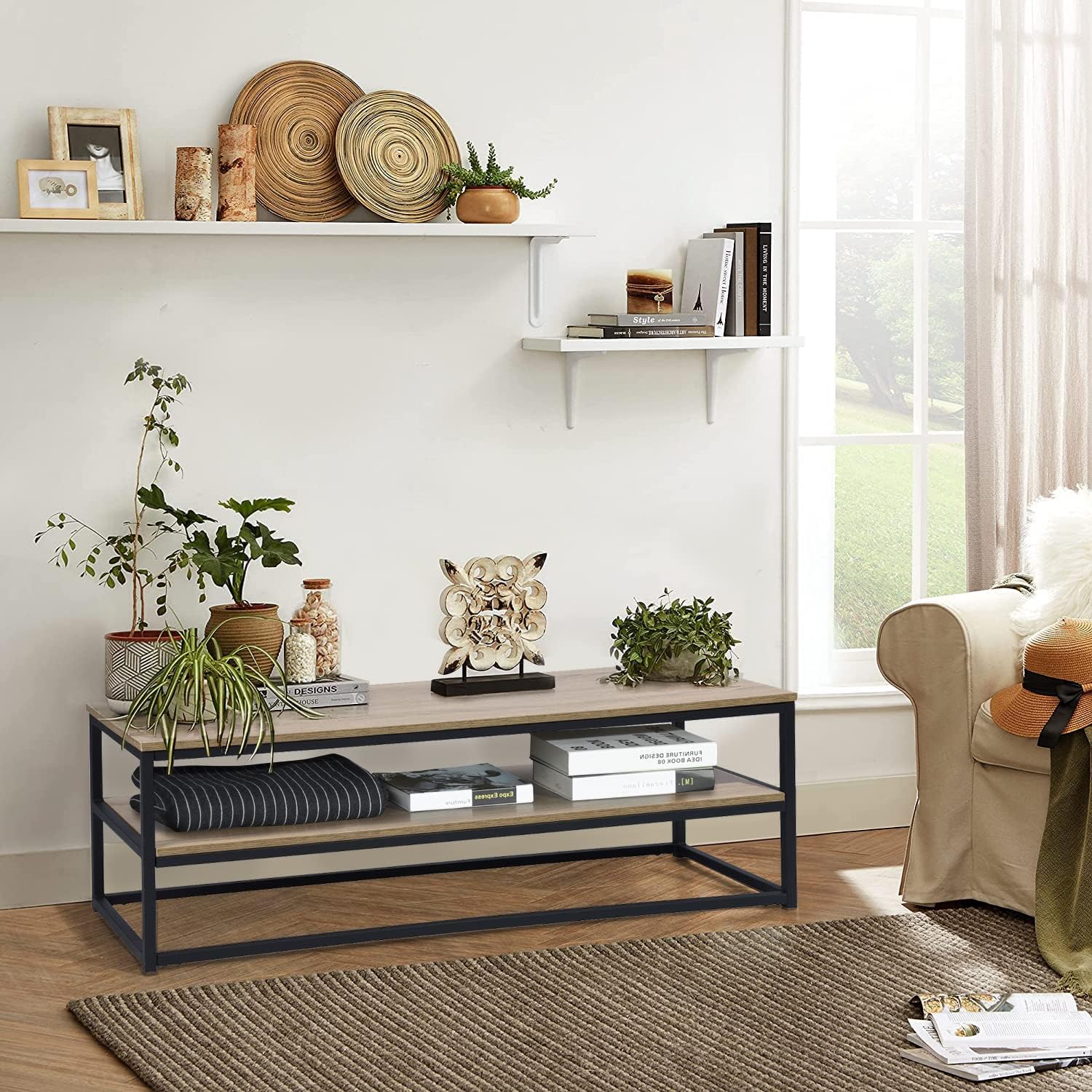 שולחן סלון בעיצוב קלאסי עם מדף אמצעי לאחסון נגיש לחפצי נוי או לחפצים יומיומיים כגון: שלט, עיתון וכד'.