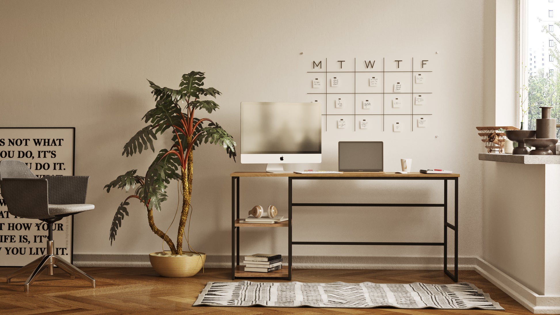 שולחן עבודה פונקציונאלי בעיצוב חדיש ונקי.