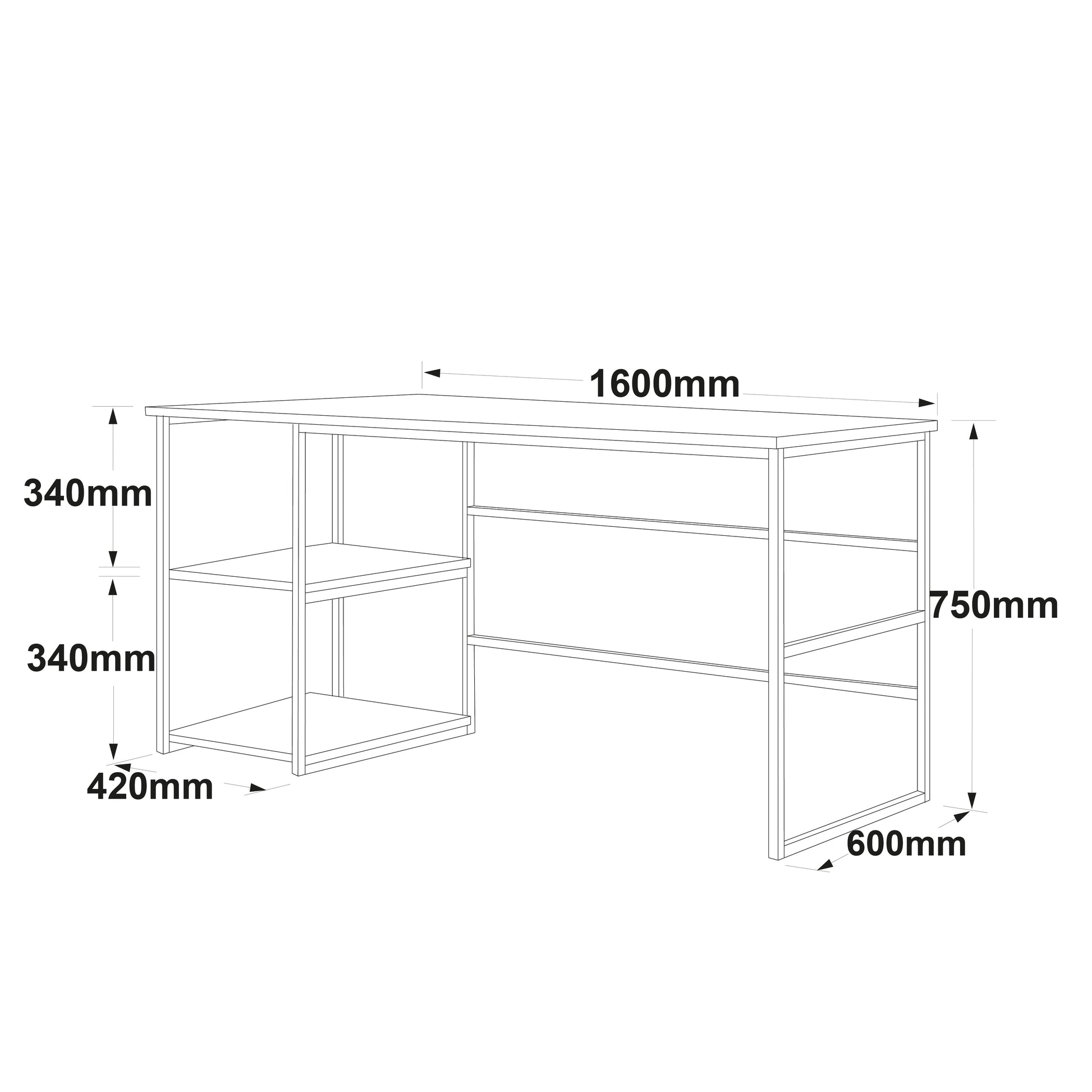 Vigo VG29 - אורן - שחור - שולחן עבודה עם מדפים